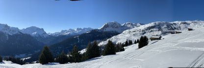 Es hat gut Schnee im Gebiet. Die Beschreibung morgens/mittags passt besser als oben/unten. Nach Abstrahlung in der Nacht morgens hart, dann mit intensiver Sonne zunehmend aufgesulzt/weich, später dann leicht gedeckelt und wieder anziehend.