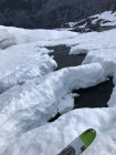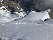 Die Fischmäuler im unteren Teil werden zunehmend problematisch, ansonsten noch massenhaft Schnee auf dem Gletscher.