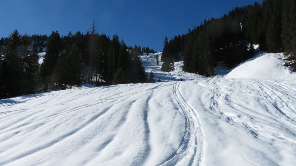 Bei der Abfahrt zur Ochsenalp muss man an einigen Stellen die Ski tragen. Der Aufstieg von der Ochsenalp zum Selispitz ist noch gut machbar. Es liegt noch genügend Schnee. Die Abfahrt ist bei den momentanen Temperaturen kein Vergnügen. Schattenseitig hart. Sonnenseitig tiefer Nassschnee.