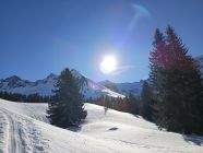 Bin über den Wanderweg den Wald hoch. Einige apere Stellen, für mich ging es ohne Ski ausziehen, man darf keine Angst um die Felle haben.
