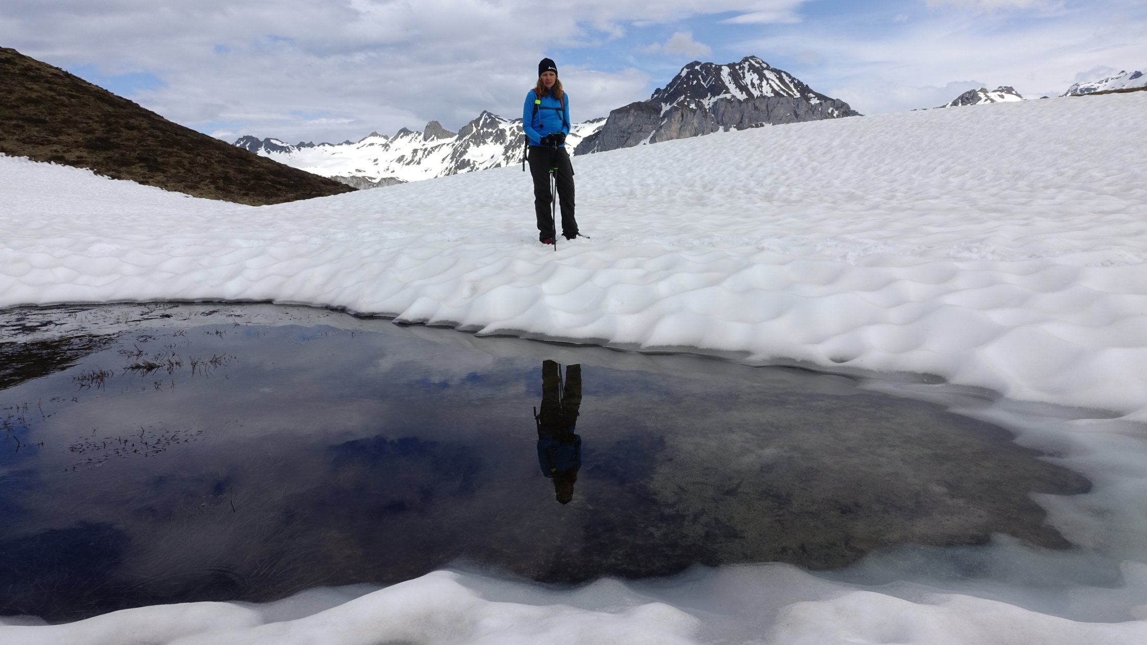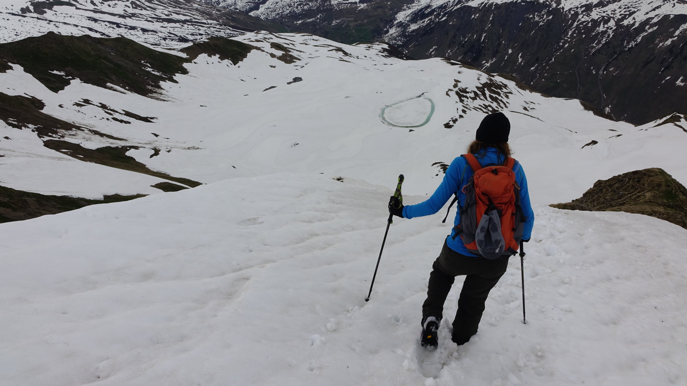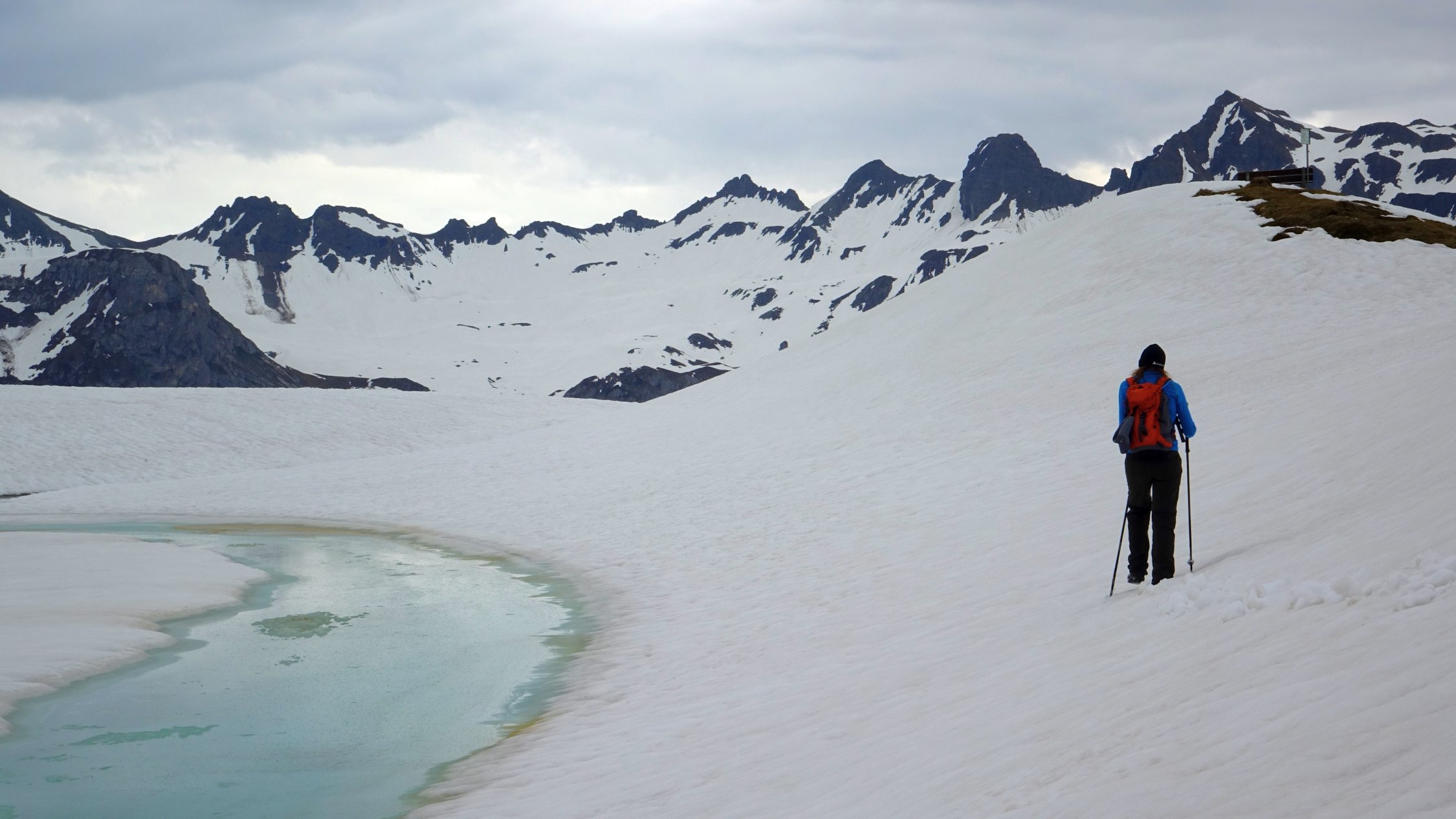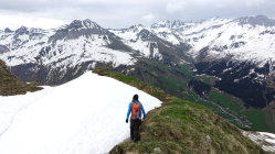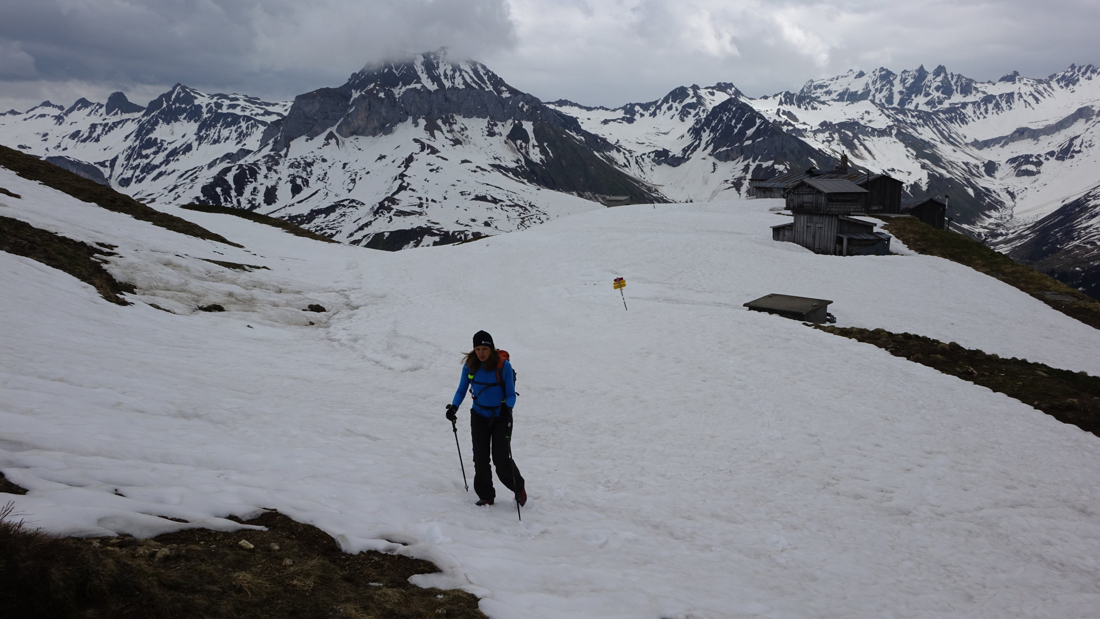 Ab ca. 2000 m trotz südexposition Schnee. Da der Normalweg noch unter Schnee liegt sind wir auf den Südostgrat ausgewichen. Dabei mussten wir unter einer Lawinenverbauung kriechen um weiter zu kommen. Wir sind dann noch zum Carschinasee abgestiegen und über Schneefelder in südwestlicher Richtung gen St. Antönien abgestiegen.