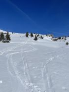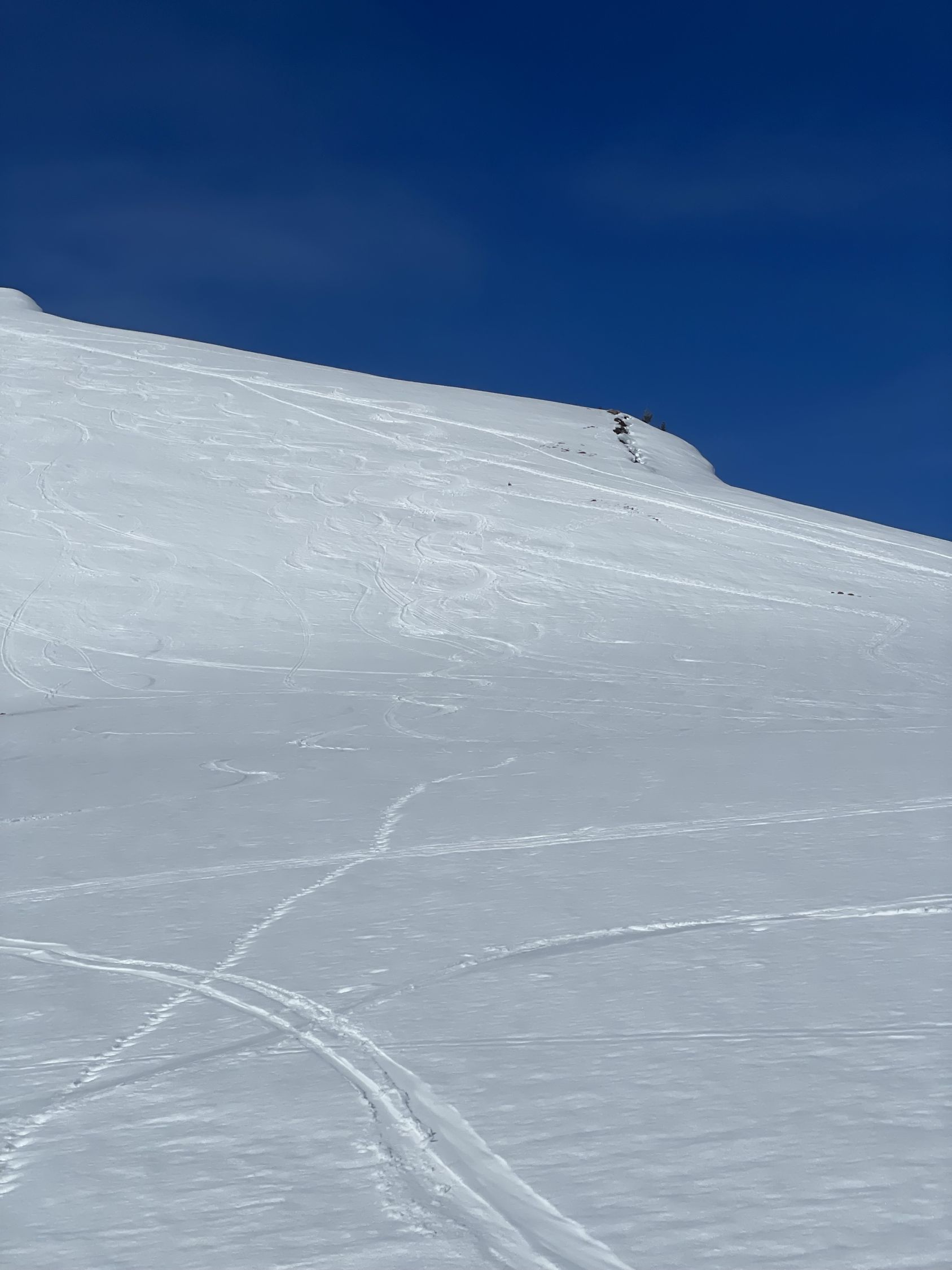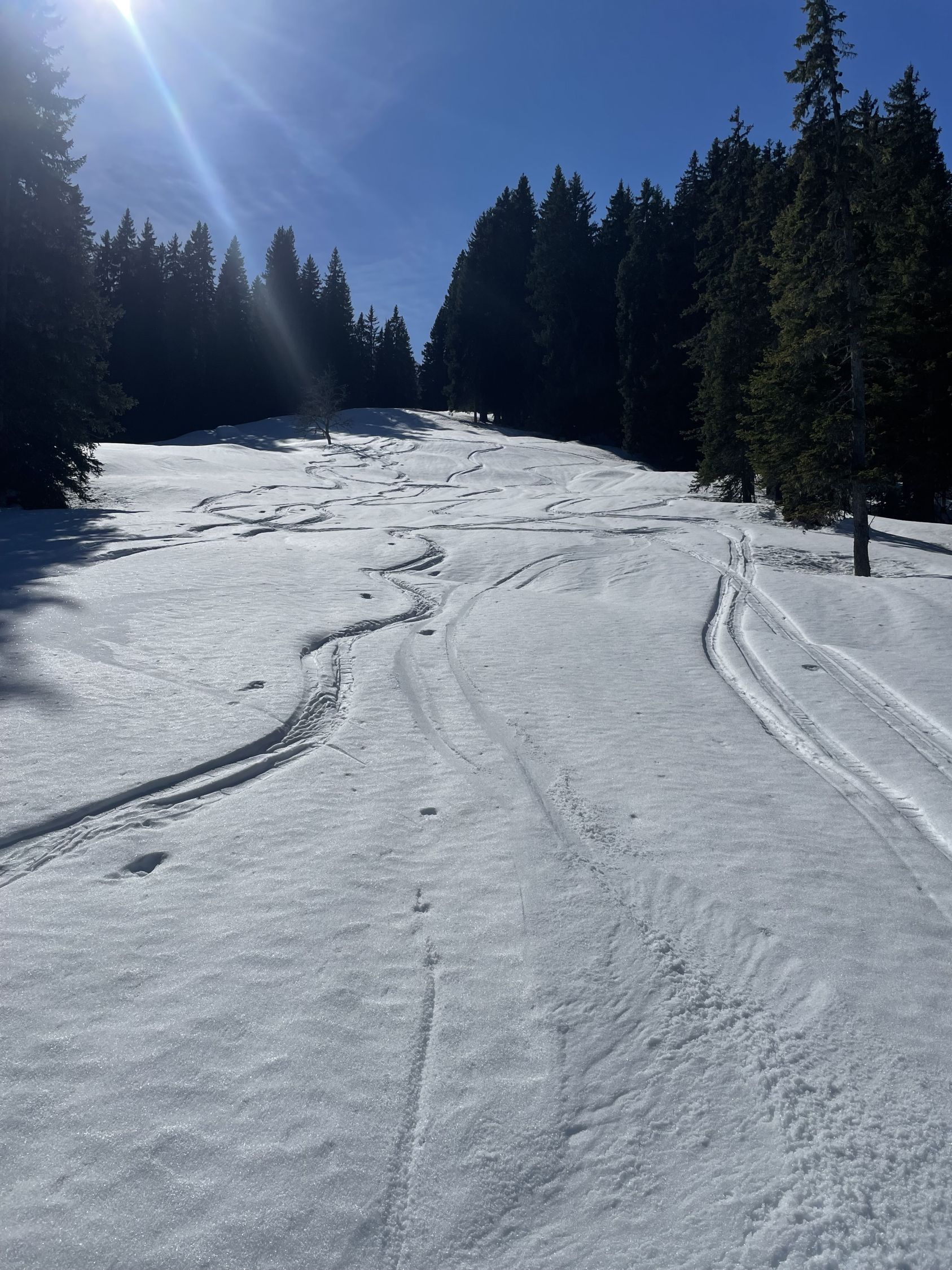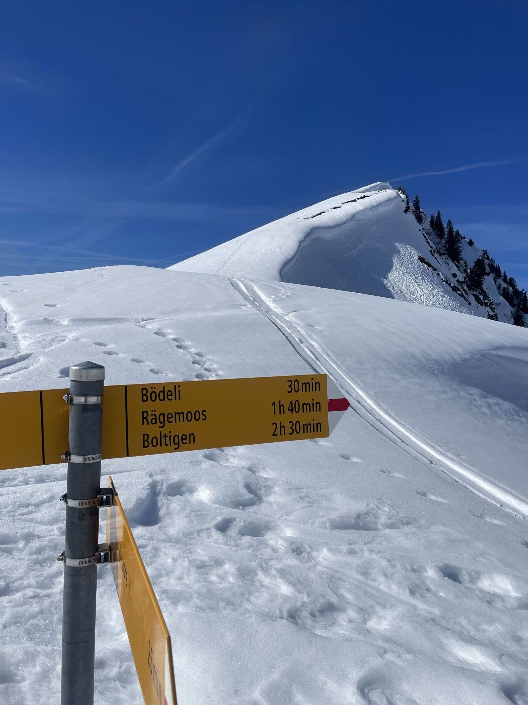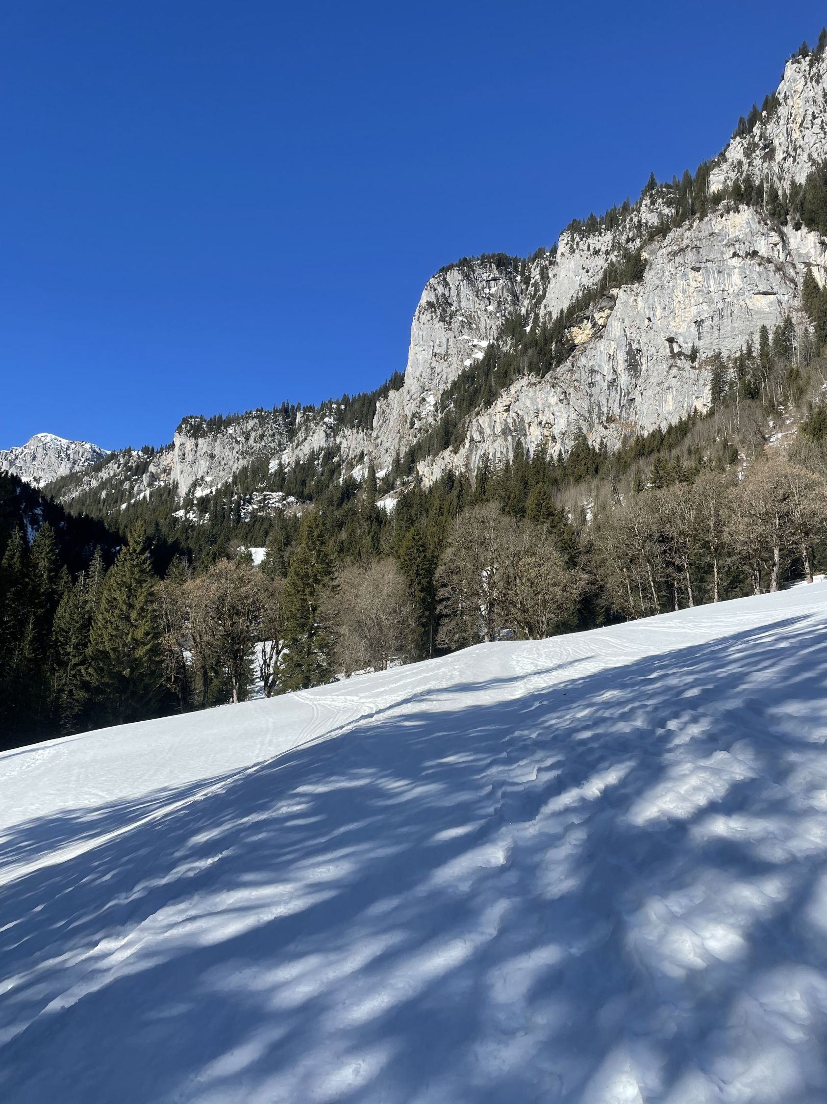 Start am PP Meniggrund um 10.00 bei 3 Grad und grand bleu. Schnee hat es vom Start ab genügend. Abkürzung gut zu gehen. Ich erwartete viele Leute, es waren aber eigentlich nur zwei grosse Gruppen Schneeschuhgänger und einige Türeler. Aufstieg bestens, am von unten gesehen rechten Rand des Chäli. Ich hoffte hier auf umgewandelten Firn dank Westexposition. Oben waren schon drei, ich fuhr sofort runter, da ich noch auf den Lueglespitz wollte (südliche Expo). Abfahrt Chäli war effektiv recht schöner Firn, nicht immer ganz tragend, aber gut. Dann rasch auf den Lueglespitz, und dort schöne Rast alleine. Die Abfahrt hier war top mit schönem Firn bis fast Obergestelen. Dann bin ich den vielen Spuren bis zum Brüggli ausgewichen (hihi!), hier nicht mehr top aber fahrbar. Ab Brüggli dann die Alpstrasse, guter Schnee bis zum PP, aber viele Löcher von Fussgängern, schade.