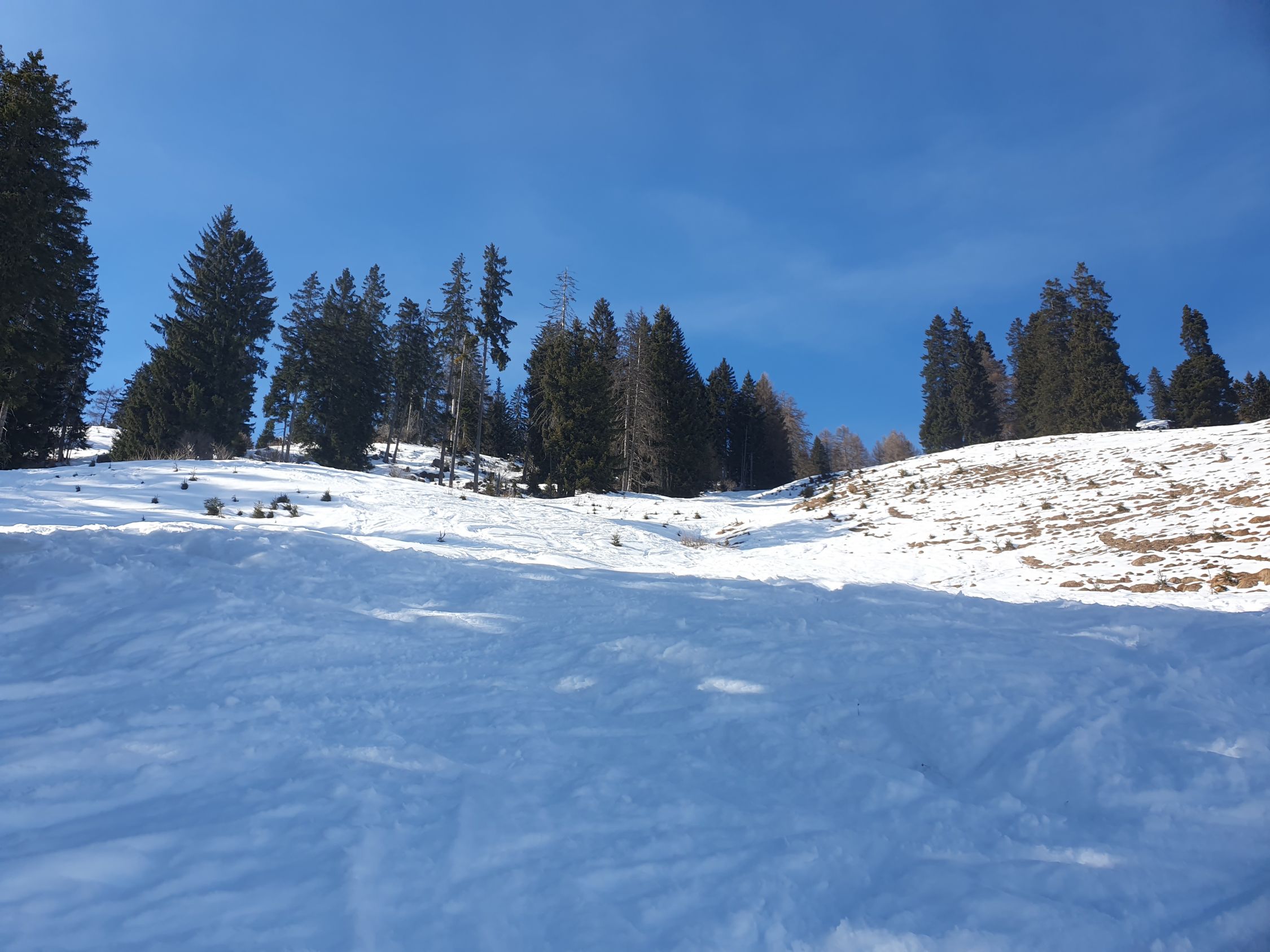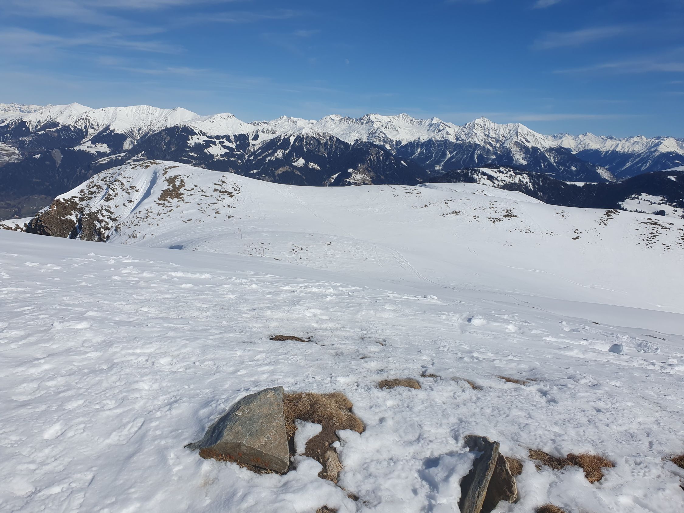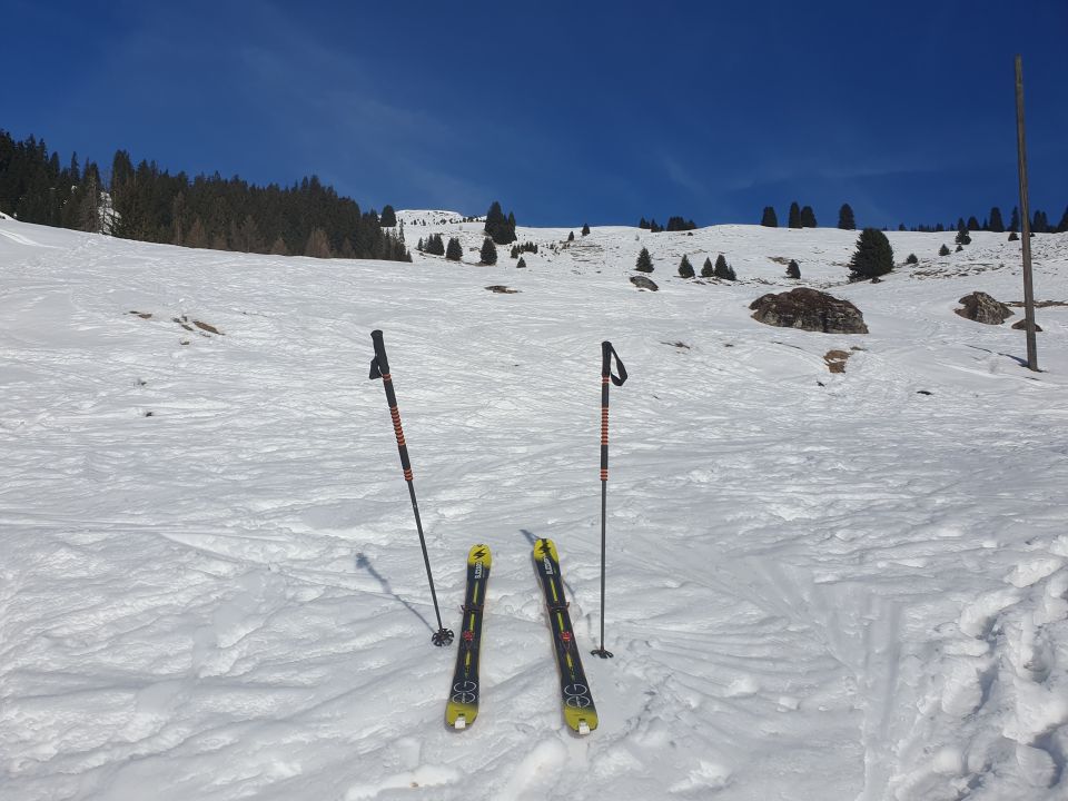 Somit ist es nicht verwunderlich, dass der Hang oberhalb von Lohn bereits jetzt schon nicht mehr viel Schnee aufweist. Doch auch für eine Abfahrt wird es noch gehen.