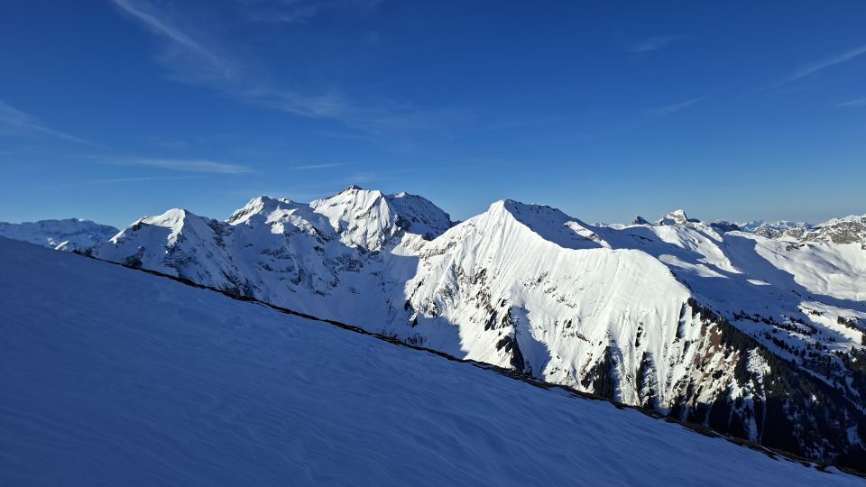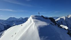 Frühlingsverhältnisse. Strasse mit PW gut fahrbar bis ca 1 km nach Kreuzung Chirelsagi. Einige Parkplätze. Ab da eisig. Mit Ski aber gut begeh-/ fahrbar. Westhänge Bäreflüe unten tw. aper - kurz tragen. NW Grat ab 1900 komplett abgeblasen. Ski aufgeschnallt bis Schulter ca 2300. Danach mit Ski bis auf den Gipfel. Abfahrt Westflanke je nach Timing supersulz. Ich war um knapp vor 11 etwas zu früh. Unterhalb 1800 je nach Timing durchbrechend oder noch hart.