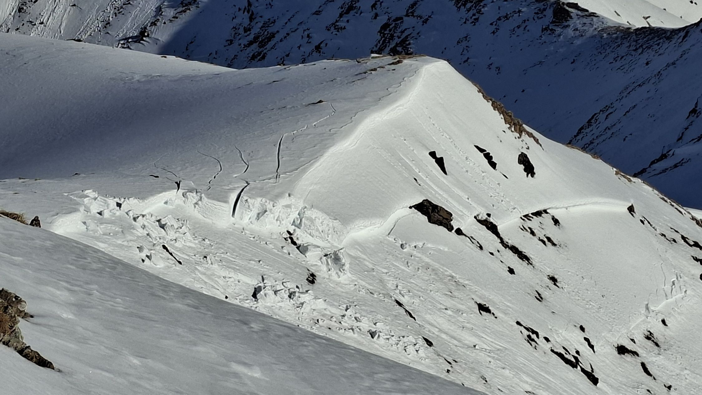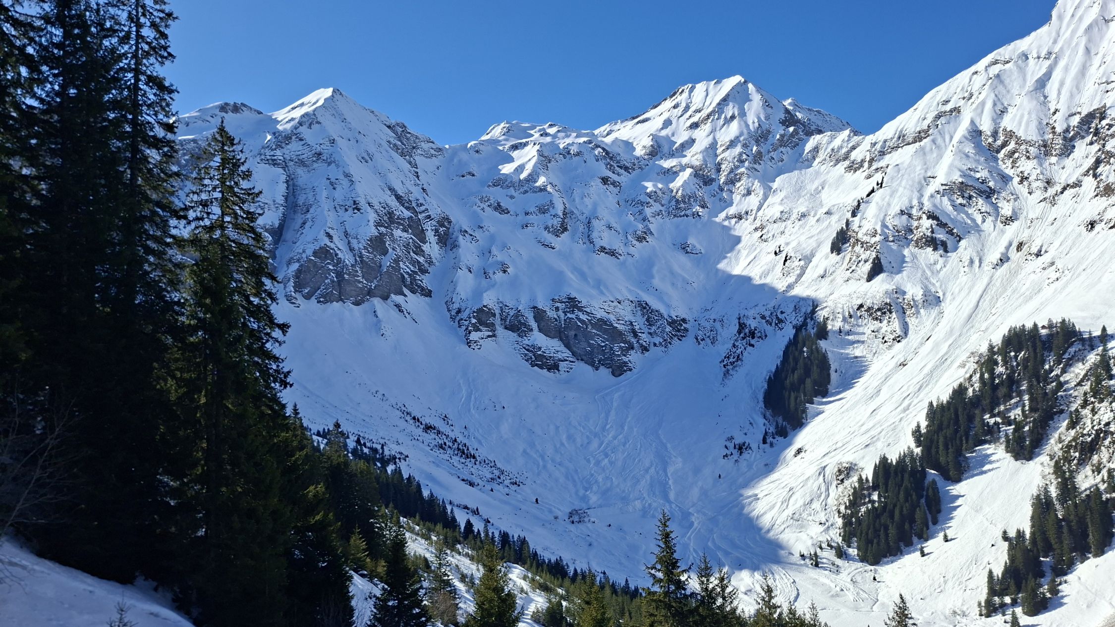 Grössere Grundlawinen bereits um 10:00 aus der Cheibehore Ostflanke.
