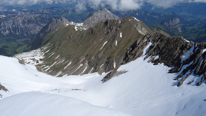Vom Gipfel bin ich zuerst über Ladholzsattel in dessen Chumme bei schönem Sulz Abgefahren