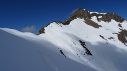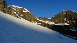 Aufstieg wieder zum Ladholzsattel und weiter zu P.2534m Sattel zwischen Winterhorn und Männlifluh.(Skidepot)