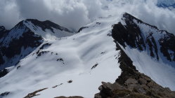 Den Aufstieg musste durchs nächste Couli links des Wasserfall nehmen dort kann man auf einem Grasband halb oben in den Aufstiegshang queren.