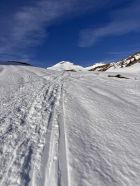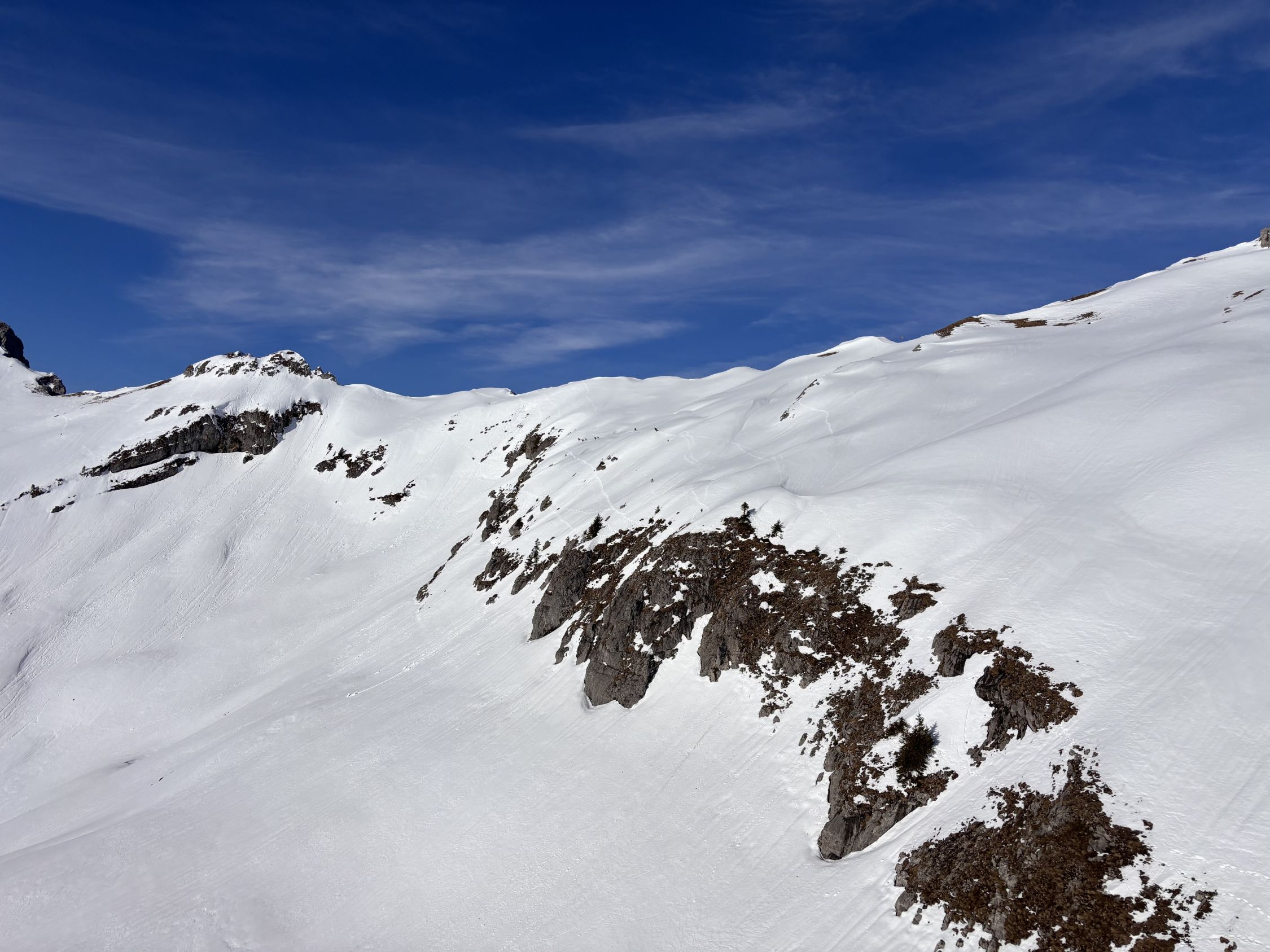 Angedacht war der Schibegütsch. Es führte nur eine Spur rauf. Abgefahren wurde der Auftiegsspur entlang. Warum weiss ich nicht. Da ich alleine war, ging ich zum Türstenhäuptli. Wäre ich nicht alleine gewesen, wäre ich gegangen. Sollte eigentlich gut gehen im obersten Hangbereich des Schibegütsch.