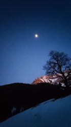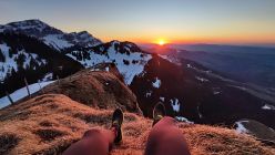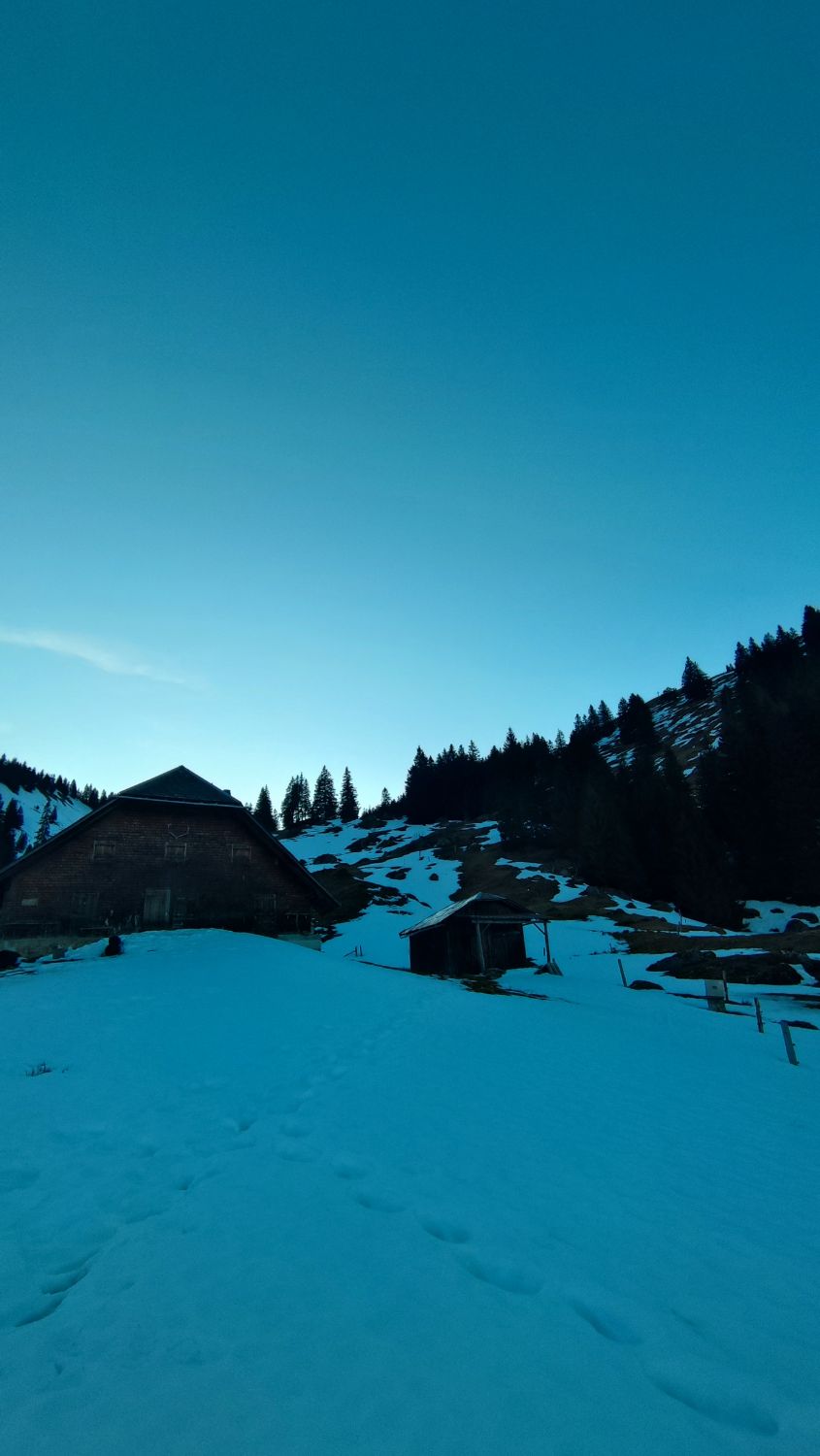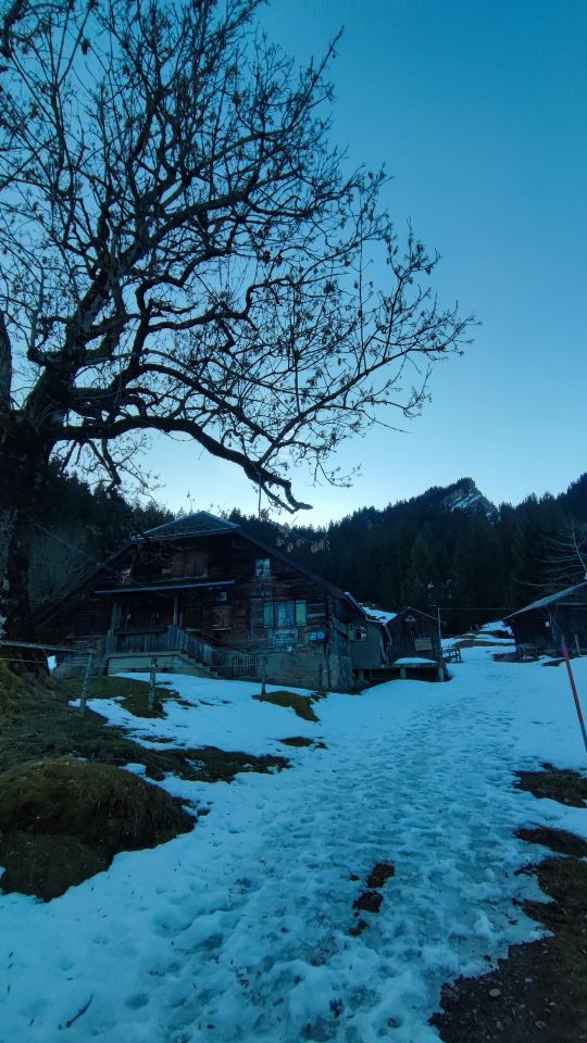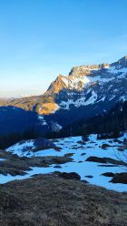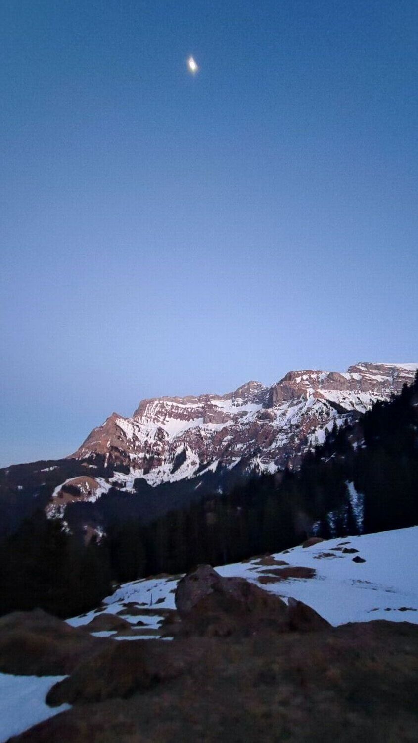 Praktisch noch durchgehend, weicher Schnee. Grödel nicht nötig.