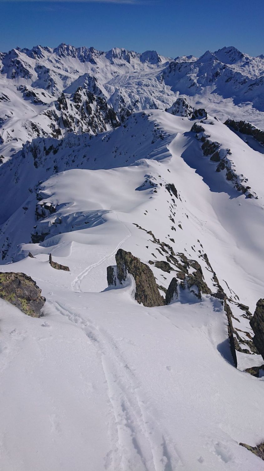 Beim Gipfel habe ich nicht gesehen, dass man ganz von rechts gehen kann. Durch die kurze steile Südflanke ging es gut und sicher.