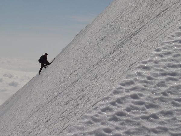 der Neuschnee ist ziemlich abgeblasen, dadurch findet man fast nur Blankeis.