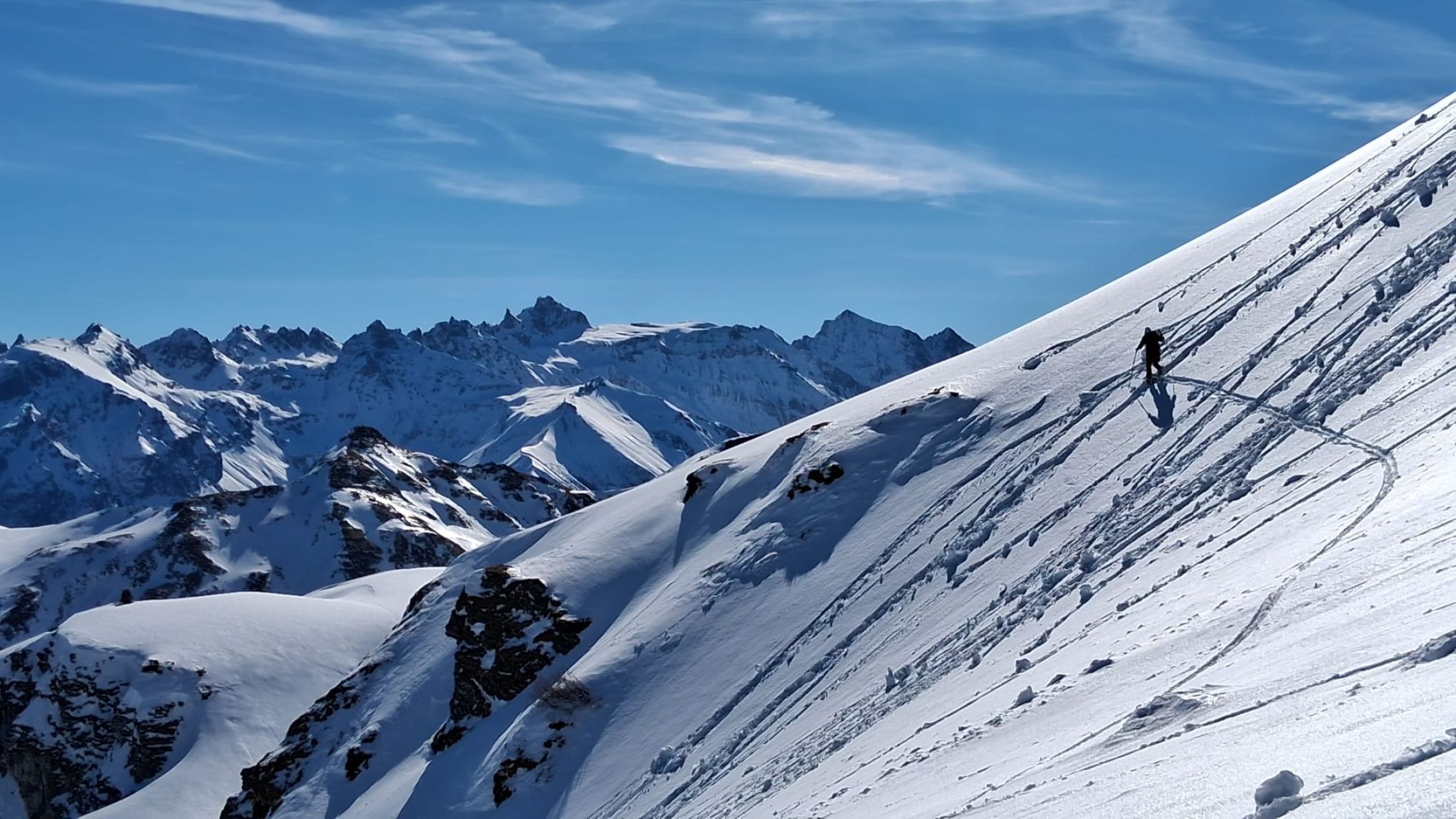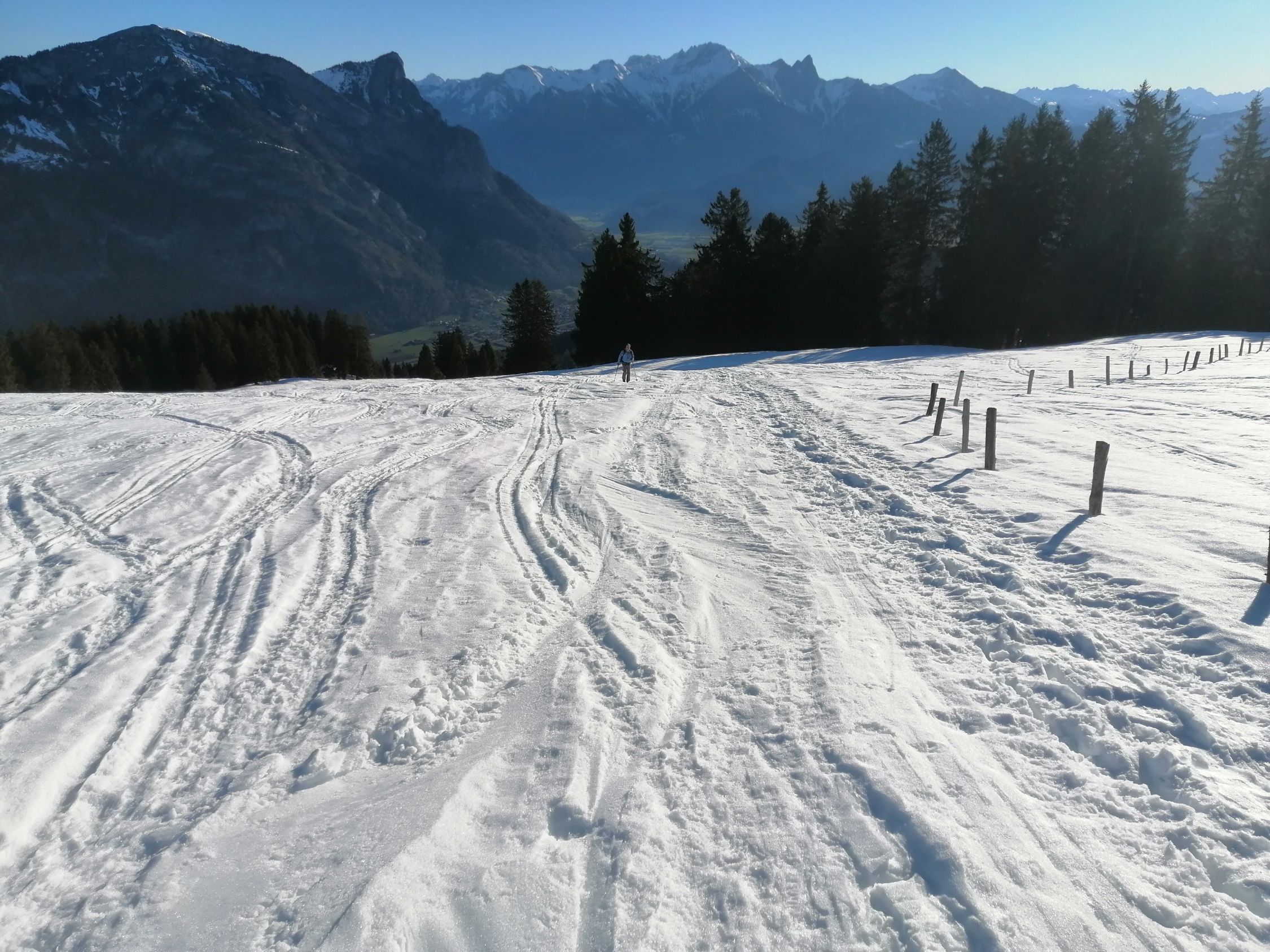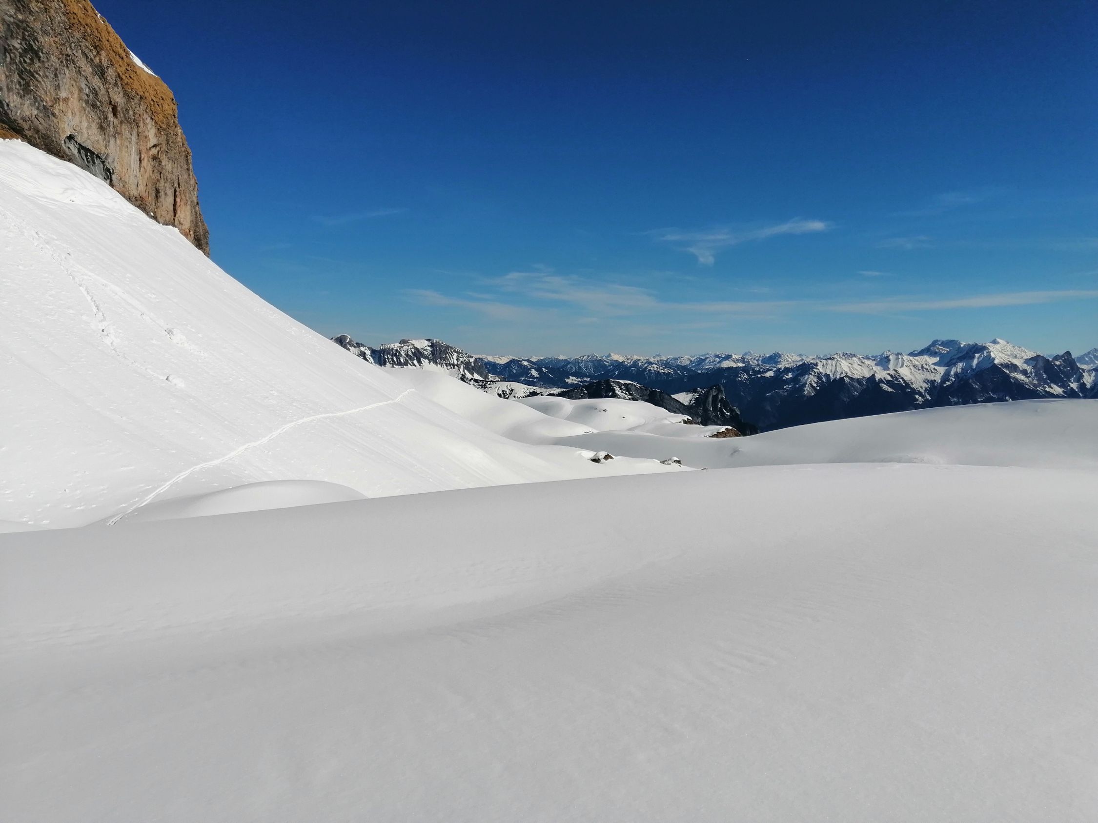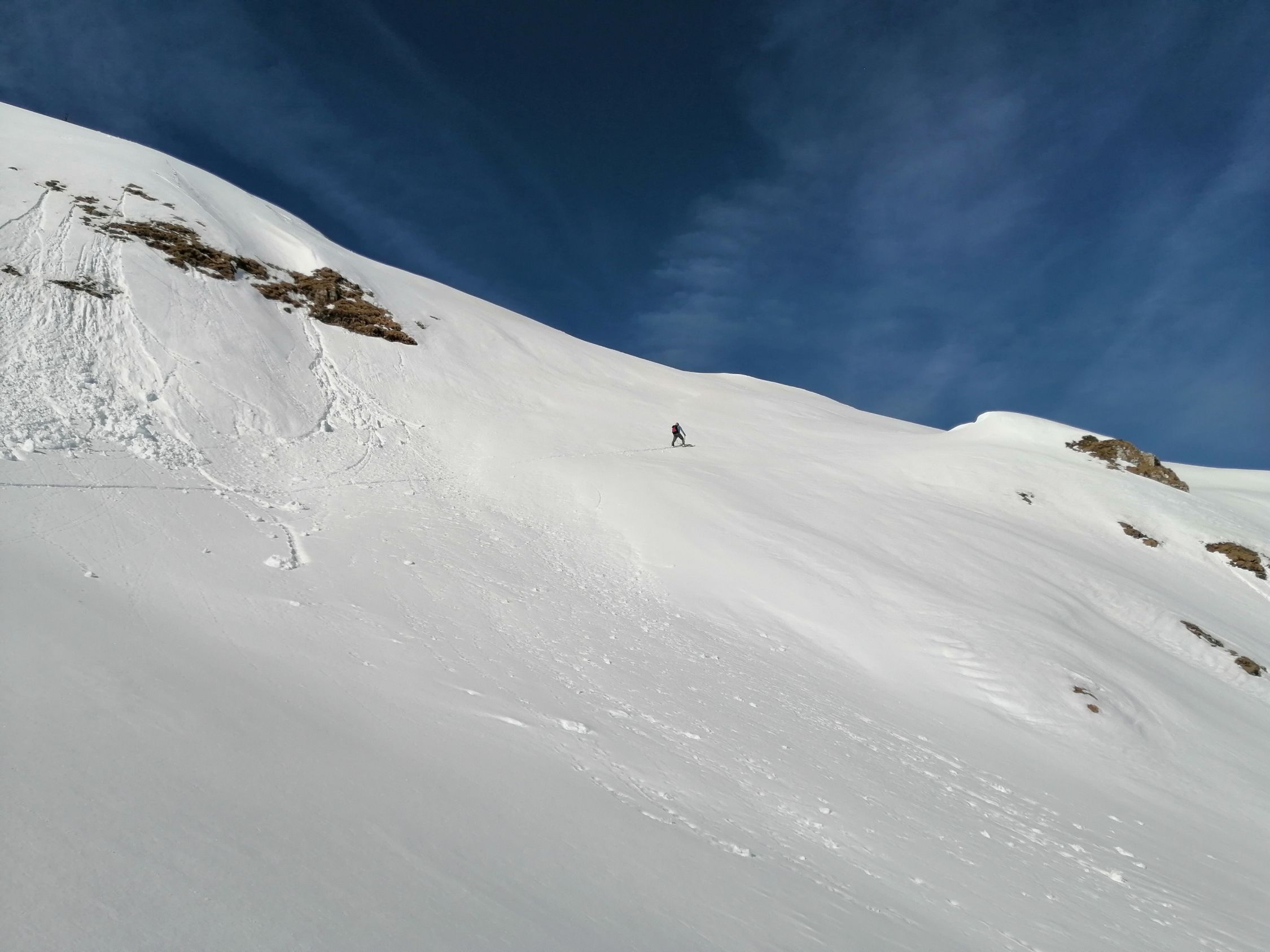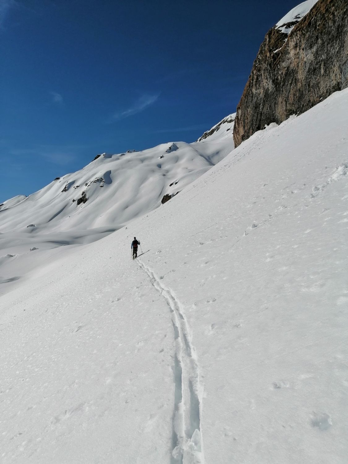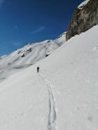 Die Querung auf 2150 geht gut, in der Schneedecke verborgen hat es eine ältere Lawine, hat insgesamt einen recht stabilen Eindruck gemacht.