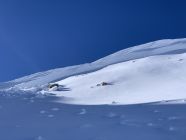 Der Wismeilen hat eine veritable Wächte am Kamm, die zum Spitzmeilen hin ausläuft und dort überwunden werden kann, der Aufstieg am Schlußhang verlangt nach Harscheisen. Die Direktabfahrt nach Norden ging heute - auch die allerdings bockelhart.