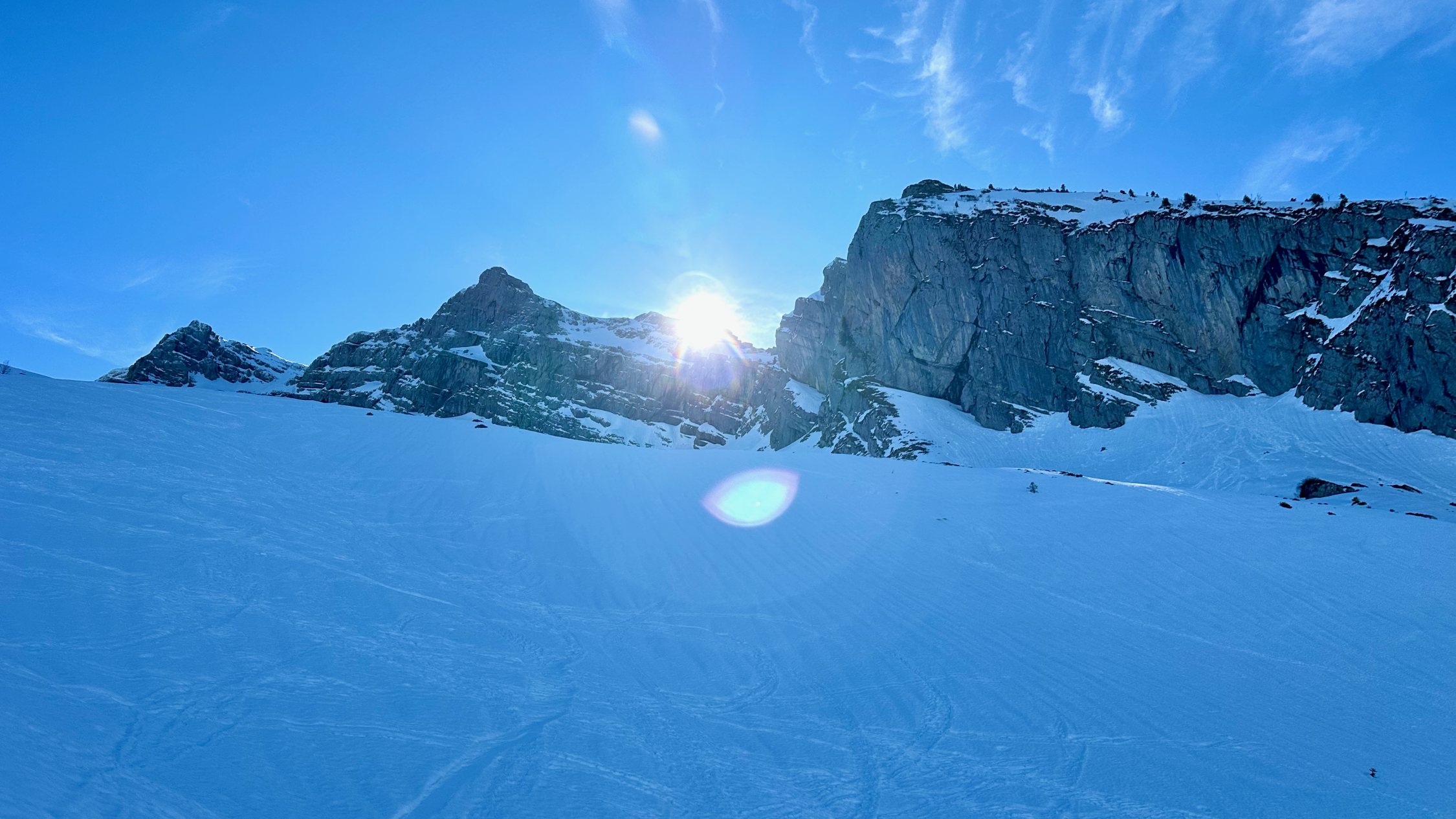 Wird weicher mit zunehmender Wärme, aber auch schwerer zu fahren. Es braucht wieder Neuschnee.