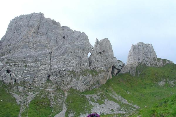 Routen aus Kletterführer Alpstein: A200 - R194 - Abseilen gegen Osten neben R188 - R175 - A170 - R162 - A155 - R135 - A130 - A105 - R117 - A85 - Abseilen gegen Osten über R90a - A60