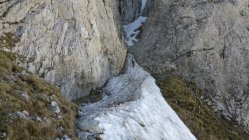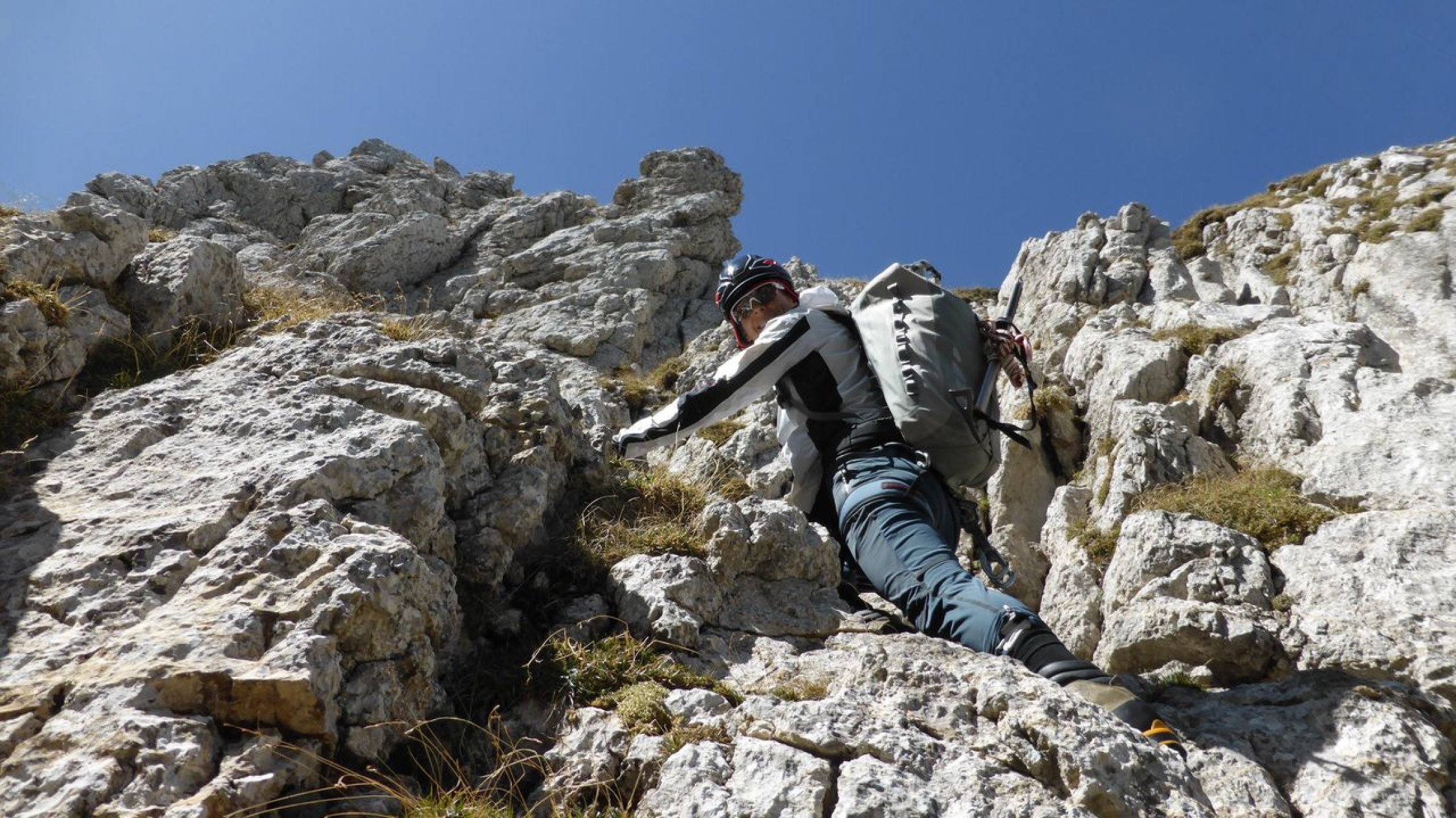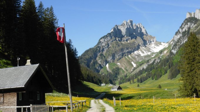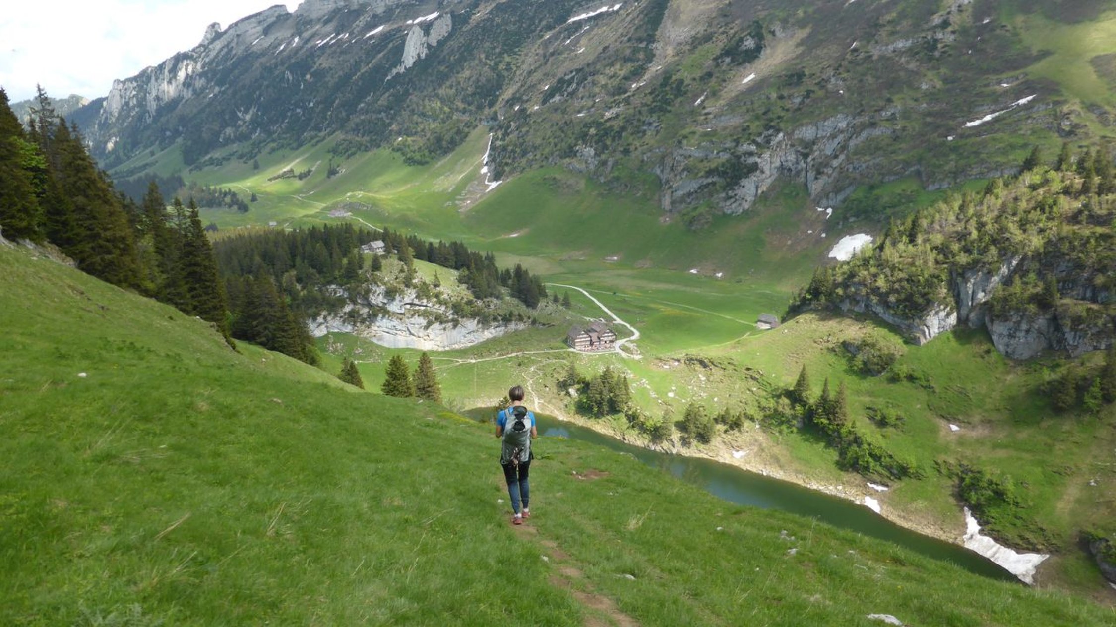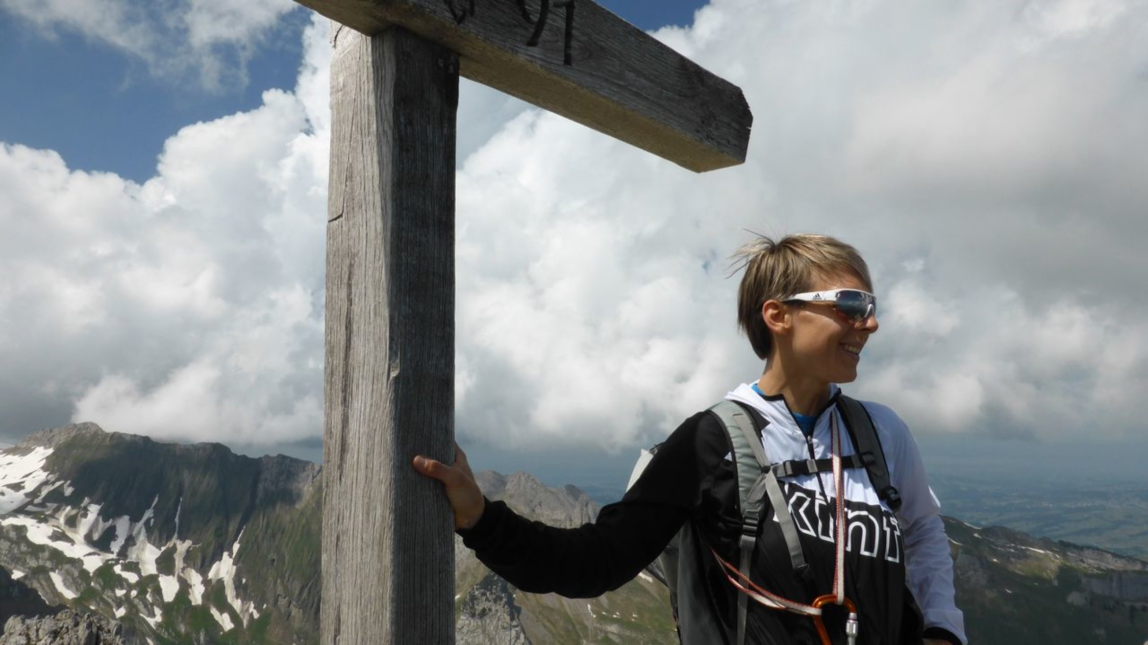 Es war ein prächtiger Pfingstmontag. Der herrliche Sonnenschein wurde erst am früheren Nachmittag mit den wachsenden Quellwolken weniger. Fast schwarz war es später am Nachmittag um den Säntis. Im Kamin zw. Freiheit und Hundstein ging es gut über Stapfschnee. Die Kletterpassagen waren reizvoll – ab dem Grat sicherten wir uns am laufenden 20m-Seil. Die untere Abseilstelle erleichterte den Abstieg in die Scharte. Ein lästig steiles Schneefeld im Abstieg vom Hundstein konnte oberhalb und links umgangen werden. Das alte, trockene Gras war manchmal heikel zu begehen.
