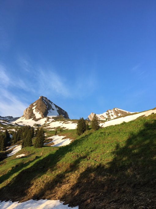 Da ich noch einen zweiten Ski zum testen hatte, stieg ich nochmals auf zum Punkt 2044 zwischen Brisi und Frümsel. Der Sommerschnee war noch immer tragend, die Oberfläche jedoch stark gewellt, diese Abfahrt kann ich leider nicht mehr empfehlen.
