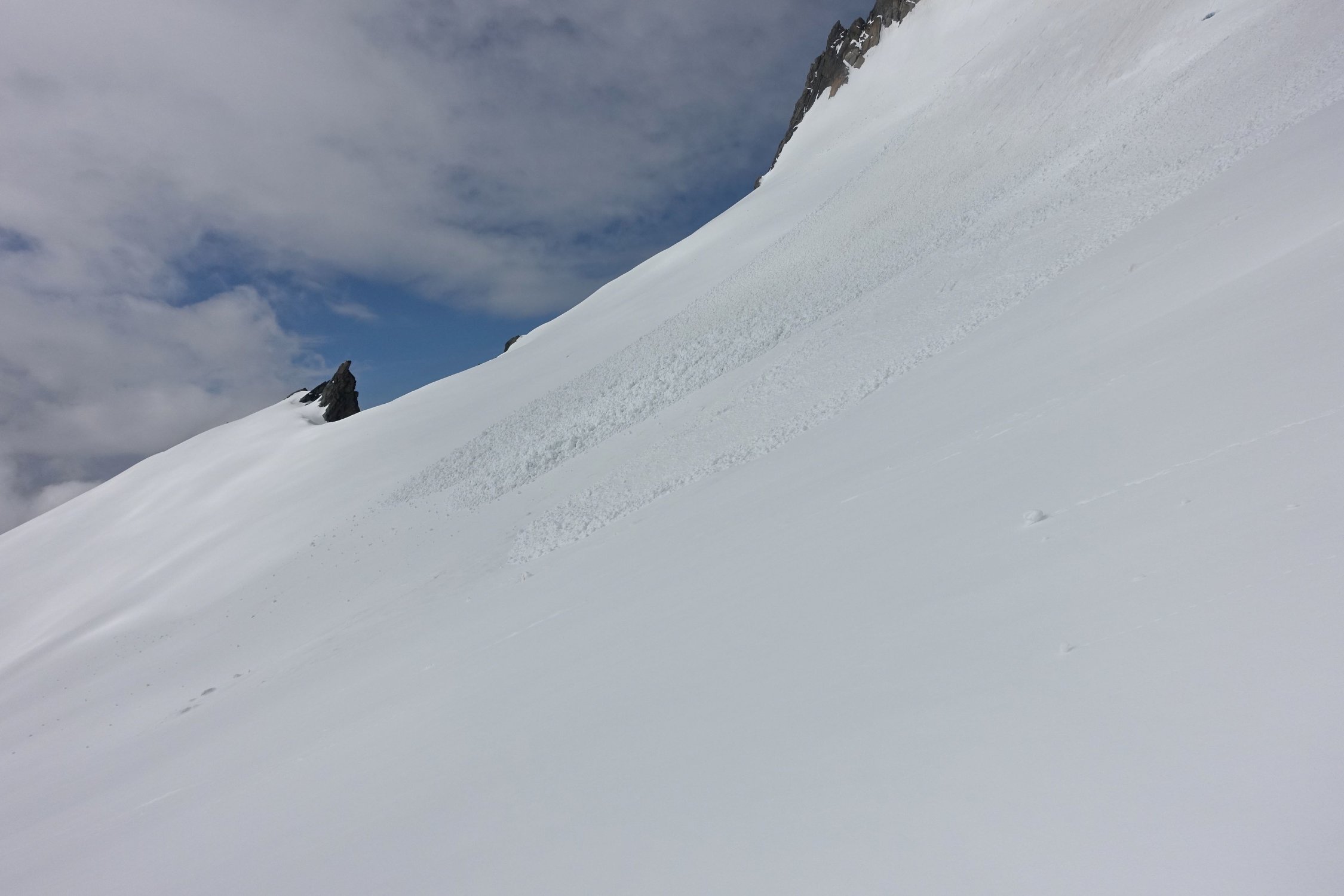 Bereits um 09:00 Uhr löste sich ein nasses Schneebrett aus der Ostflanke des Galenstock, nördlich der Oberen Bielenlücke. Anrisstiefe ca. 20 bis 30 cm.