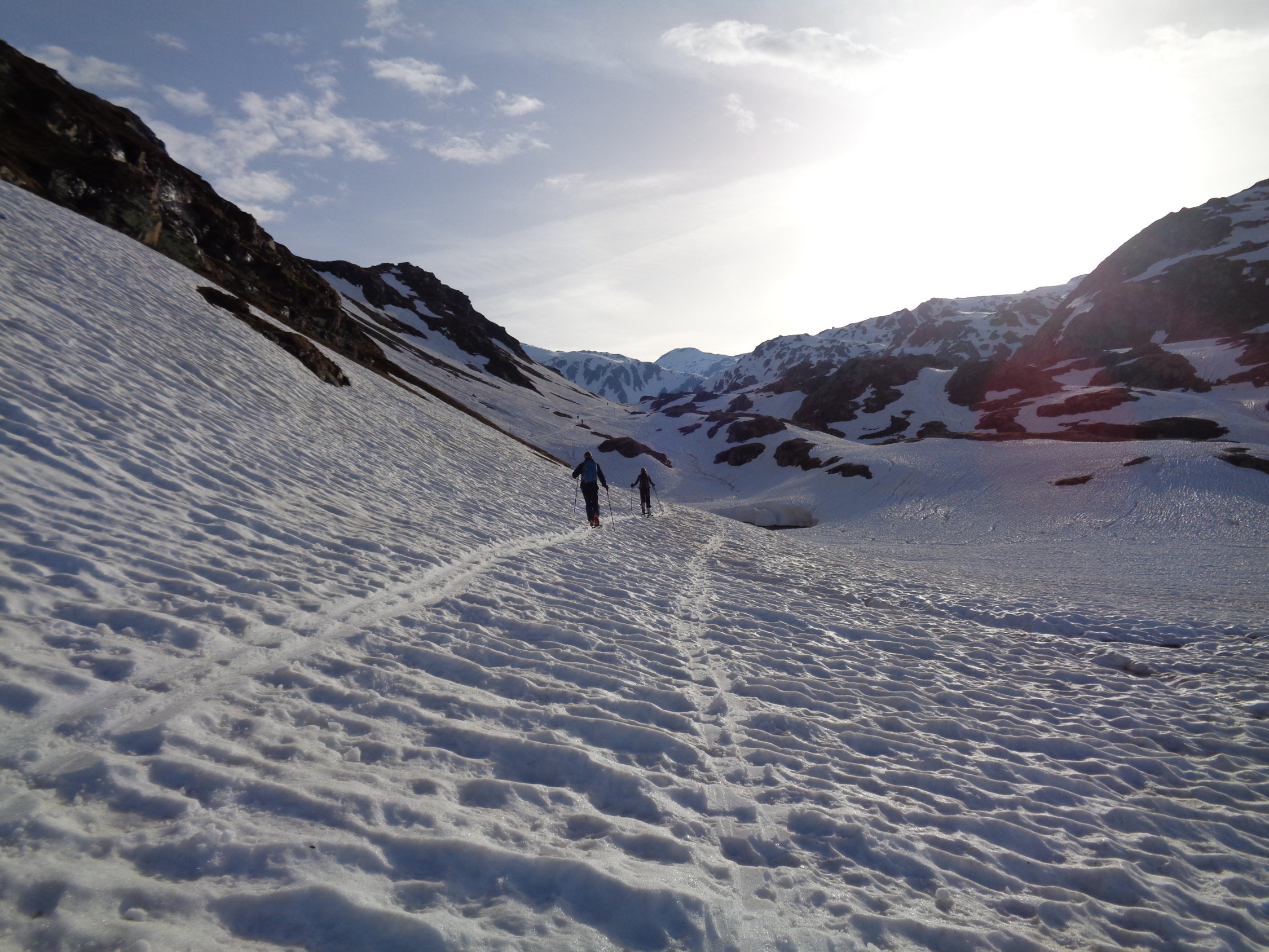 Ab der Staumauer hat es enorm viel Schnee, beim Latscher bis zur Staumauer dürften Tragestrecken immer länger werden.