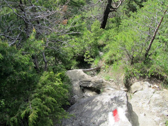 Lange Zeit schattig im Wald, führt der Bergweg durch ein landschaftlich einmalig schönes Gelände. Der Nagefluhfels ist allgegegenwärtig.