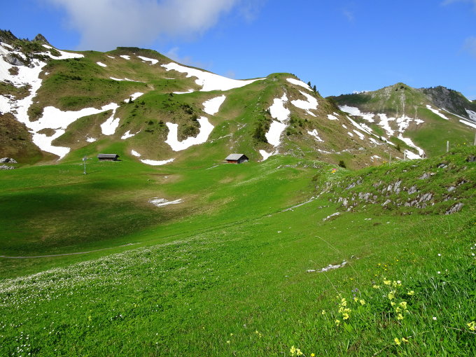 Nach dem Regen der Nacht Wege ein wenig feucht, aber gut begehbar. Die Schneeflecken vor allem im Abstieg zum Oberstockesee kann man gut umgehen oder begehen. Gute Schuhe sind Voraussetzung. Der Graben vor dem Oberstockesee ist noch gut mit Schnee gefüllt. Tipp: vor dem Graben rechts über die Weide zum See und zum Weg hinunter. (Wegpunkt: grosse Tanne). Die restlichen Schneeflecken sind nicht der Rede wert und werden sowieso schnell verschwinden.