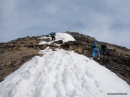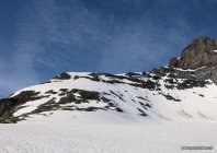 Aufstieg über Nordostflanke auch bald nicht mehr machbar. Auch die Südost-Mulde hat schon etliche apere Stellen.