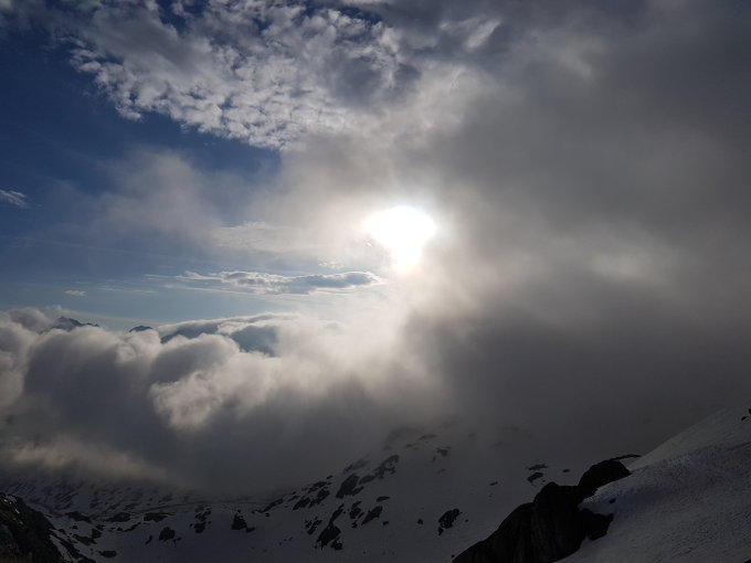 Beim Tourenstart noch sehr schönes Wetter am 6.00 Uhr, bei einer Temperatur von + 7°, die Ski konnte man sofort montieren, schon nach wenigen Minuten Aufstieg auch die Sonnenbrille, bei der Vallettalücke dann von Süden her Nebelfelder, der Gipfel vom Lucendro nach einige Zeit heiter, der Aufstieg war auf der ganzen Route Sulzig, die Harscheisen waren heute wieder nicht nötig, der kurze Fussaufstieg entlang des Grates hatte viel Schnee mit gutem Trittschnee, am Gipfel kalt mit leichtem Wind, heute viele Tourengänger am Lucendro unterwegs, das war gut für die Orientierung , beim Gegenaufstieg gingen wir wieder zur Vallettalücke hoch, was sich als gute Idee zeigte, der konnte mit Fellen heute problemlos gemacht werden, nach einer steillen Querung besuchten wir doch noch den Gipfel der Fibbia, die Abfahrt zurück zum Gotthardpass wählten wir eher rechts, dort war zuletzt noch ein Super Coloir das grossen Spass machte zum runter fahren.