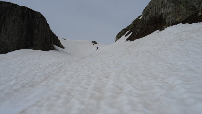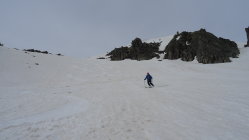 Schneeverhältnisse gut schon am Morgen um 06.30 Uhr überall Sulz im Aufstieg und in der Abfahrt