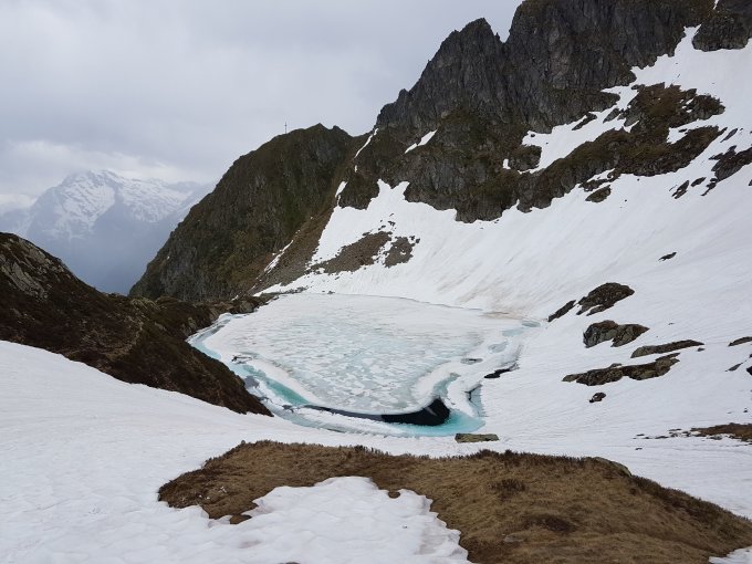 Auf dem Nord-Ostgrat liegt im unteren bereich kein Schnee mehr. Ab ca. 2500m vermehr Schneefelder. Im unteren bereich mit gutem Trittschnee oben sehr locker aber Nass. Hüfttiefes einsinken und wegen der Steilheit sehr schwieriges vorankommen. (Ist jedoch jetzt gespurt)