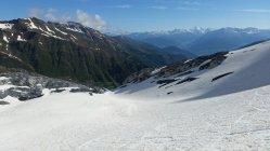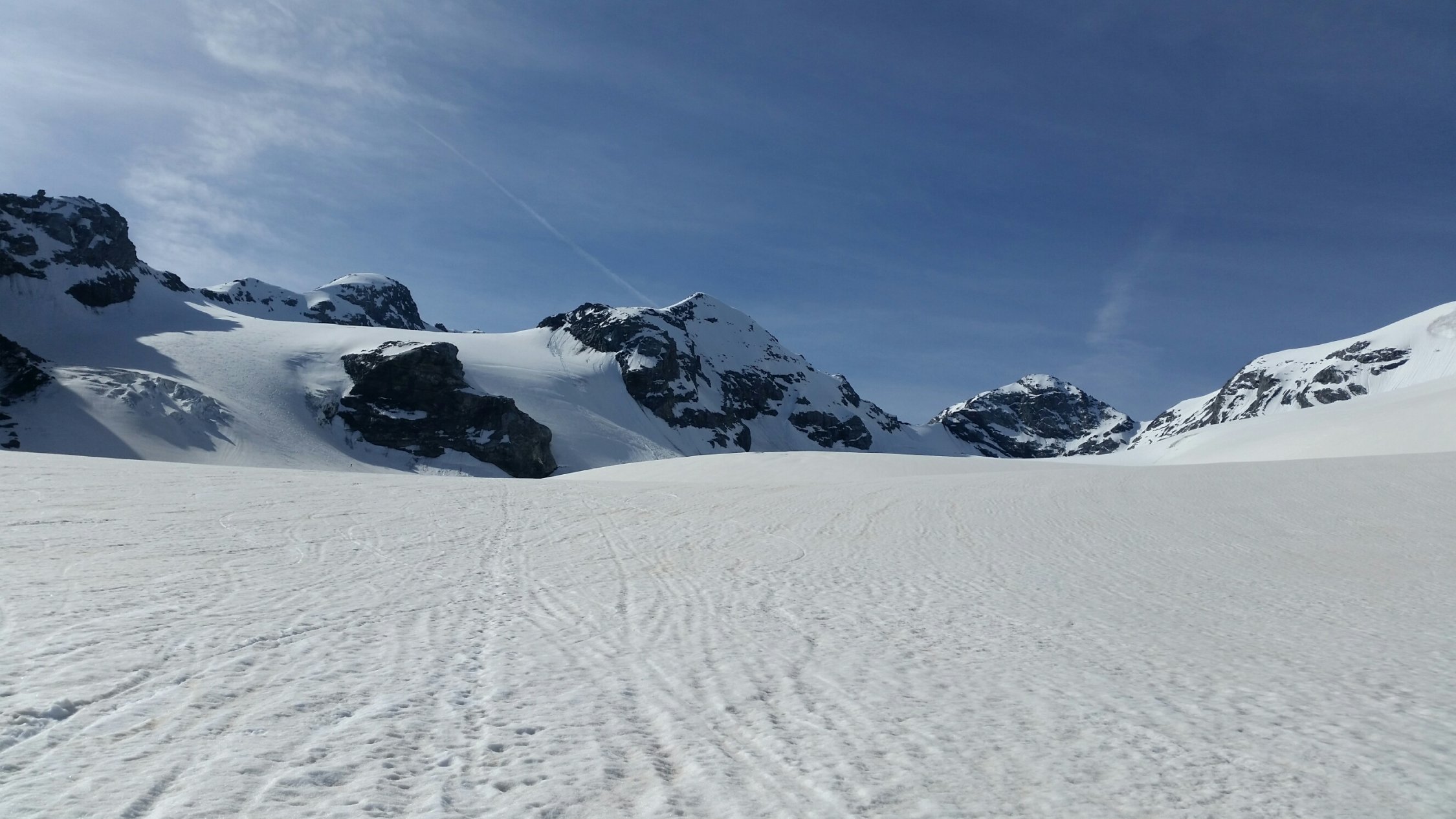 Aufstieg Tucketsp. wies ebenfalls eine gute Spur auf. Unterhalb der Hintere di Dentro bin ich direkt zu Fuss aufgestiegen, resp. nicht über das Joch. Jedoch aufgrund der Wärme über das Joch abgefahren.