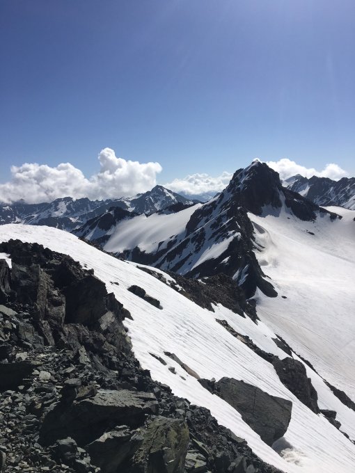 Anstatt über die Nordflanke, kam ich direkt vom Scalettahorn (siehe separater Eintrag)über den Grat. Dieser ist auch auf der Skitourenkarte gepunktet eingezeichnet und im Führer wird er als WS+ angegeben. Ich kenne mich mit diesen Bewertungen wenig aus, denke aber, dass die technischen Anforderungen den üblichen Rahmen einer Skitour bei weitem sprengen.