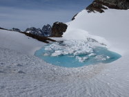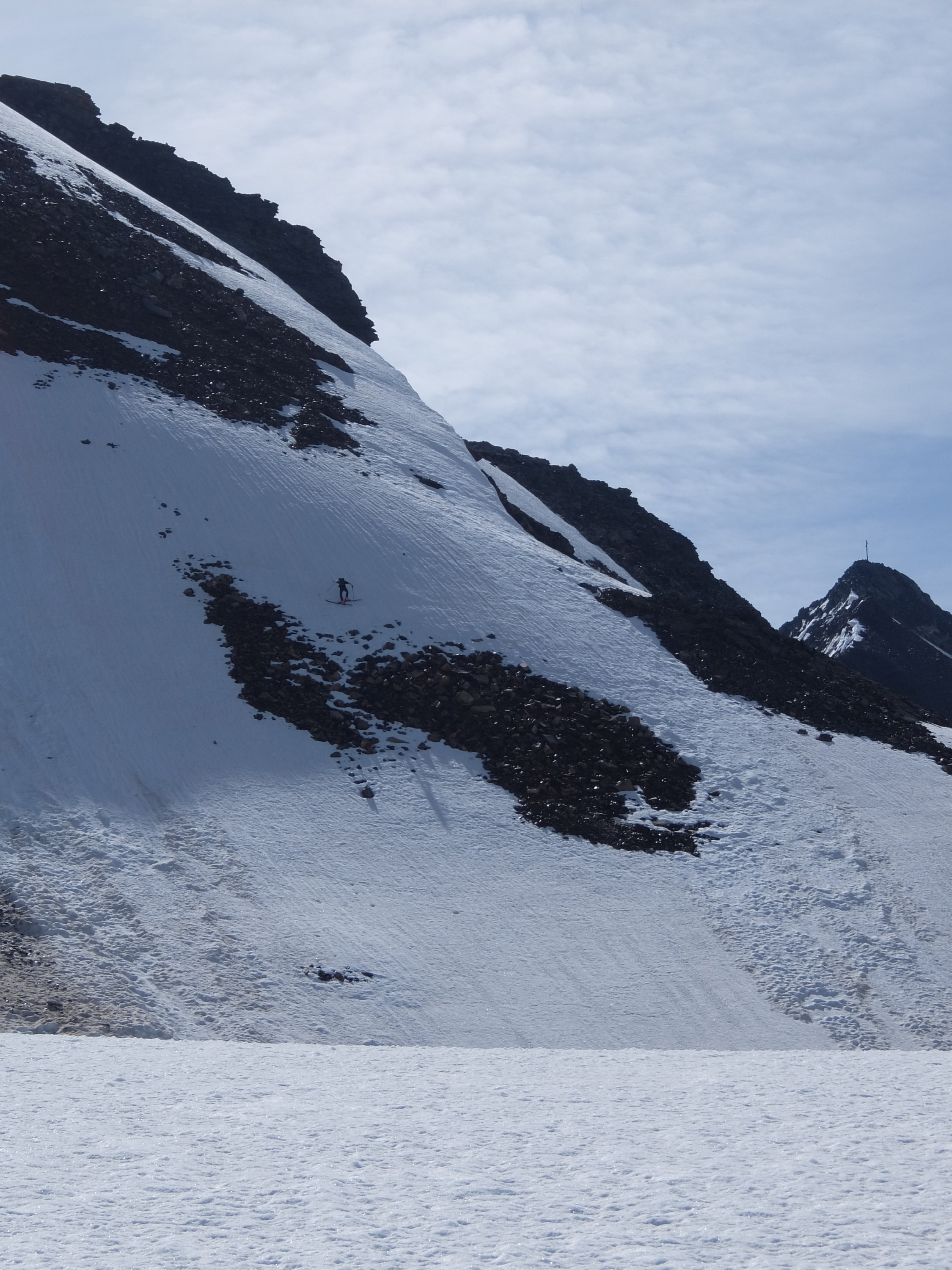 Schnee erst kurz vor der Klostertalerhütte, aber nach dieser sind noch Tragestellen. Erst am Gletscher war der Schnee reichlich und gut durchgefroren. Gipfelhang teils aper, Steigeisen waren sehr von Vorteil. Abfahrt nach Gipfelrast um ca. 11 Uhr um perfekten Firn anzutreffen. Ich bin dann nochmals rauf zur Rotfluhlücke (wo sich ein schöner Gletschersee befindet) und den zweiten Zweig des Gletschers (Richtung Norden) abgefahren. Hier sind im unteren Teil teilweise tiefe Spalten (über die Steinplatten), besser in der Rinne daneben die noch gut gefüllt ist. Die Nordabfahrt, von unten gesehen, schien machbar zu sein.