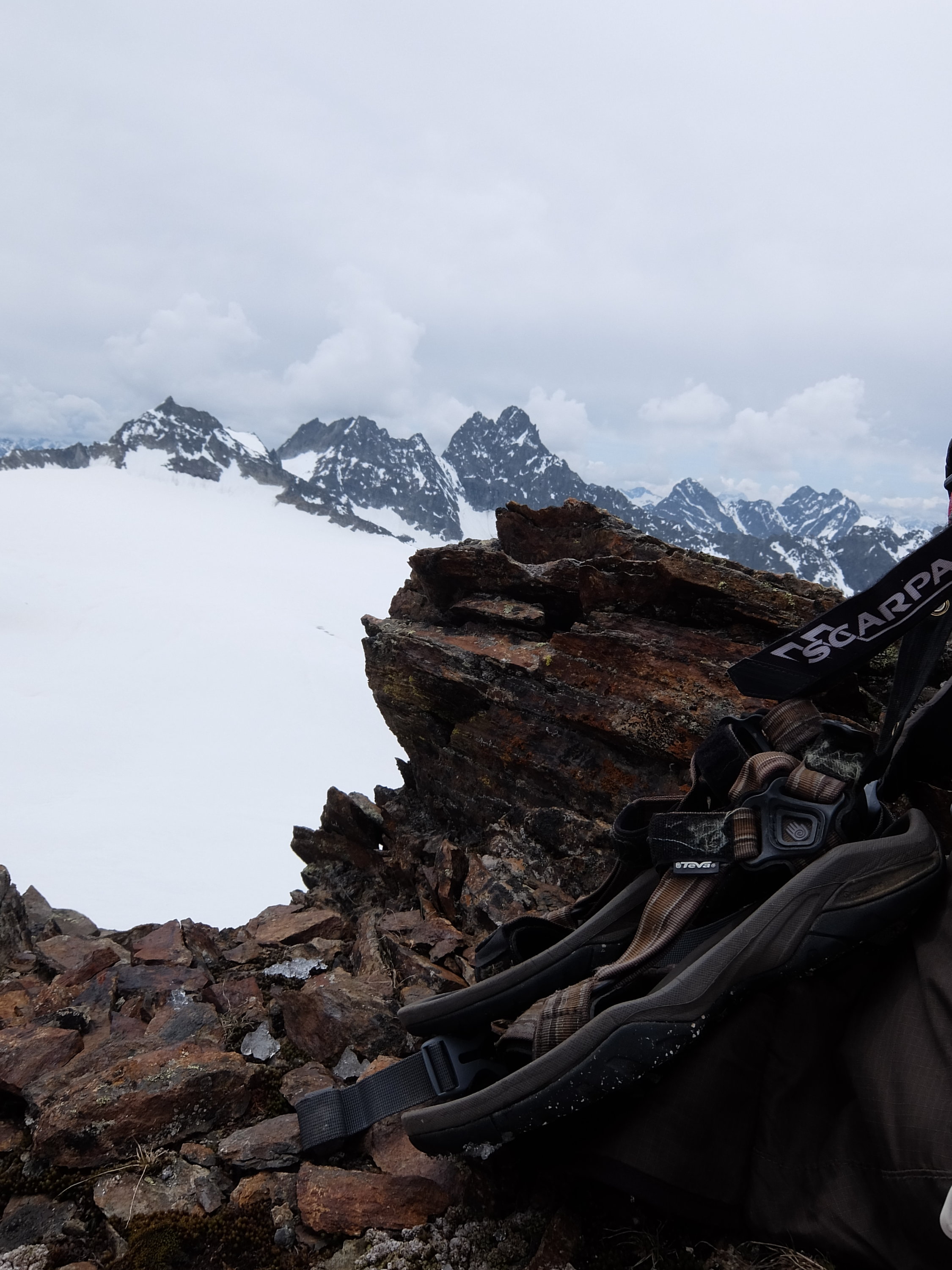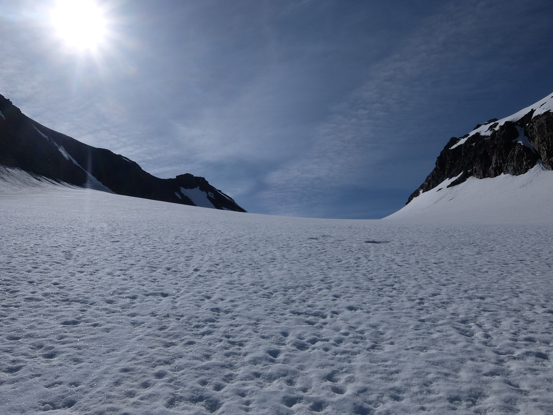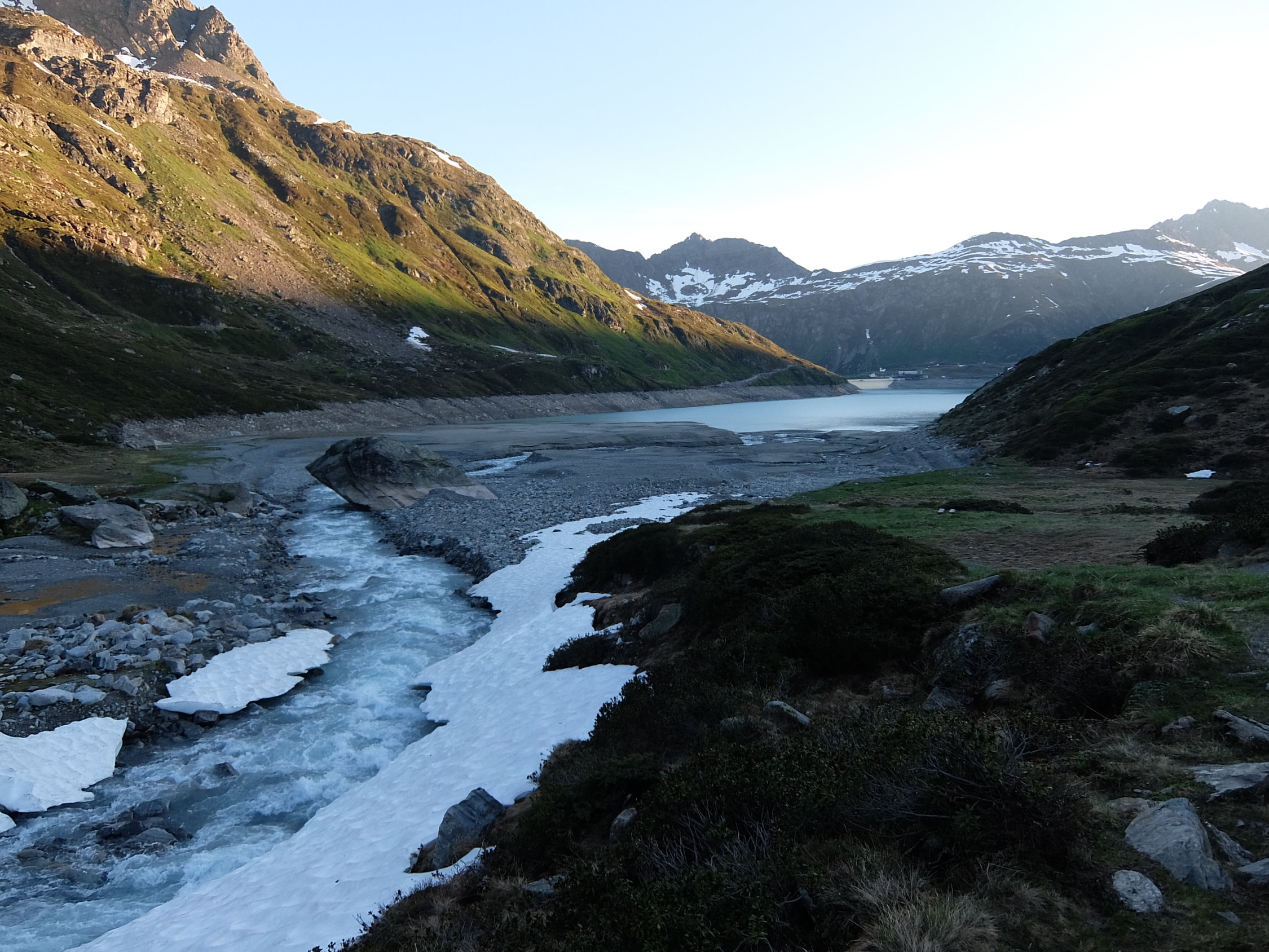 Das "ausgezeichnet" bezieht sich auf die Schneebedingungen am Gletscher und die allgemeine Stimmung am Berg. Absolute Stille und nette Begegnungen am Gipfel. Auch der "Zustieg" im Klostertal neben dem rauschenden Bach auf grünen Wiesen ist sehr schön. Der Einstieg ins Klostertal ist momentan etwas abenteuerlich, da beide Wege um den See offiziell gesperrt sind. Beim Ostweg (Richtung Wiesbadenerhütte) fehlt dann die Brücke in Richtung Klostertal (ich habe den Bach nah am See gequert), der Westweg ist von der Staumauer nicht zugänglich (Tor), man muss also improvisieren.