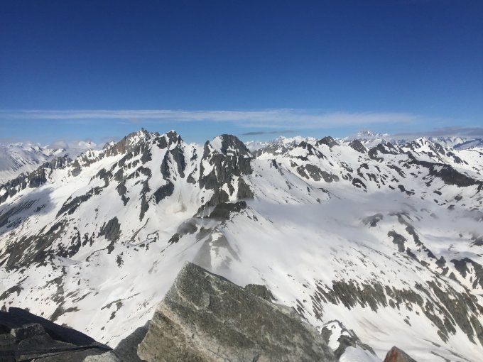Nach dem mühsamen Wetter unter der Woche heute eeeeeendlich mal wieder etwas Stabilität in der Atmosphäre. Das wollte ich nutzen, bei Ankunft auf dem Gotthardpass sah man angesichts der Anzahl PW, dass ich nicht der Einzige war. Von der Strasse weg noch gut Schnee, natürlich aber Nassschnee von unten bis oben. Im Aufstieg zur Vallettalücke zogen Nebelschwaden zu und zeigten, wie viel Feuchtigkeit auch heute noch in der Luft war. Abfahrt zum Lucendropass problemlos. Weiterer Aufstieg zum Gipfel zuerst im Nebel, aber dann an der Sonne! Sehr schöner Aufstieg, wie überhaupt heute die Aufstiege das "Ausgezeichnet"-Smiley begründeten. Nach dem Skidepot kurzer, recht scharfer Grataufstieg, wobei man es vermeiden sollte, ins Tessin runter zu fallen ;-), das Bedretto liegt doch 1600 Meter tiefer. Top-Aussicht am Gipfel in alle Richtungen, er liegt ja auch exponiert genug. Dann Abfahrt durch wenig bremsigen Nassschnee zum Lucendropass und Skitragen via den sehr schönen Gratweg zur Fibbia. Das war ein Genuss. Die Abfahrt zum Pass hat dann, nun ja, stattgefunden im Sinne von: Rasch hinter sich gebracht. Logisch, dass nach dem wochenlangen seichwarmen Wetter kein Firn mehr da ist. Heute konnte das meine Freude an dieser schönen Tour auf keine Weise trüben.
