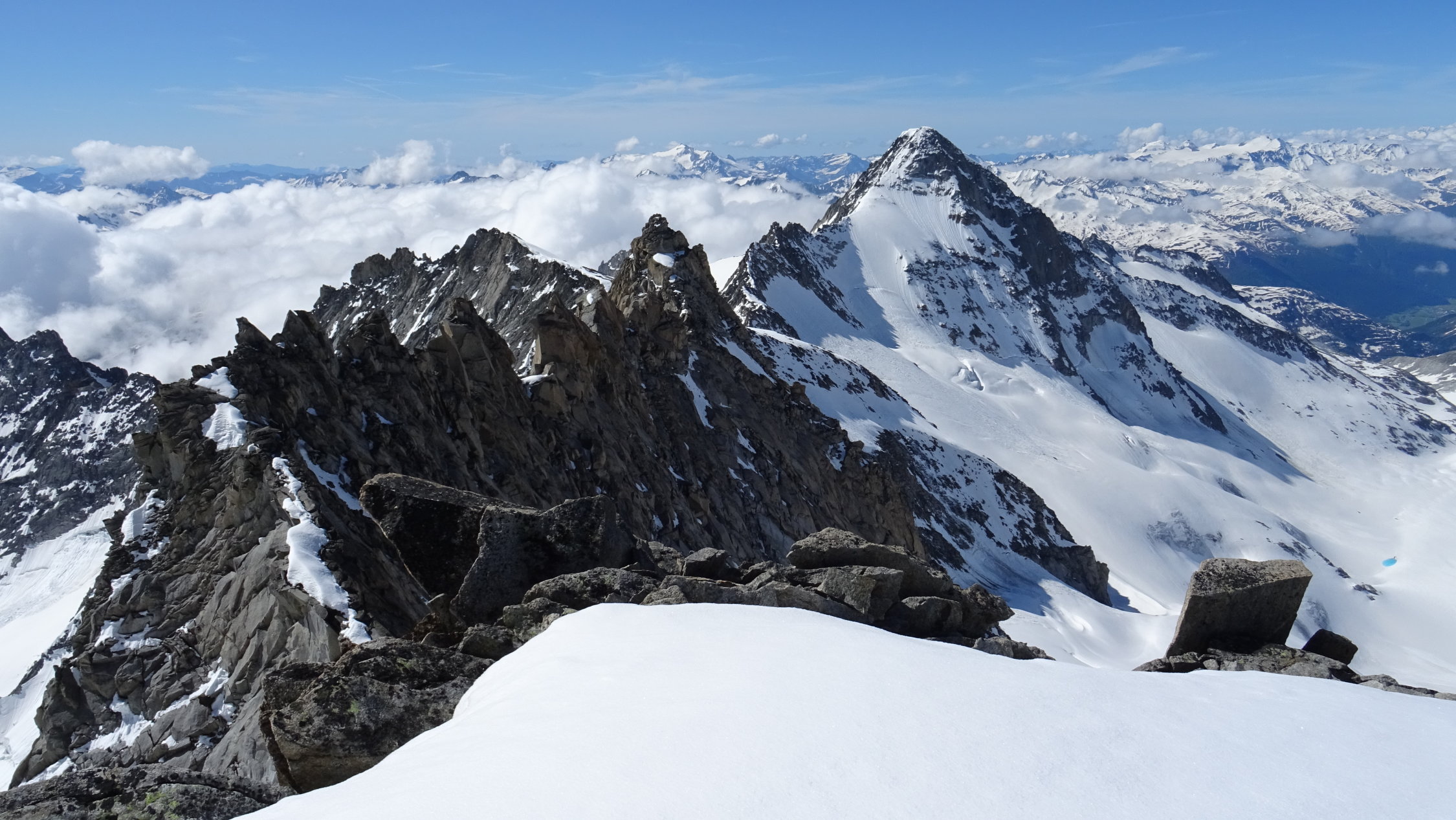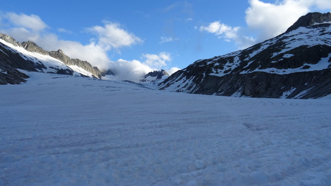 Wir sind heute der vielen Tourengänger wegen die den Dammastock besuchten zuerst auf den Rhonestock gegangen und ich bin danach noch allein auf den Dammastock.Nach dem Rhonestock habe ich den Dammastock mal von der rechten seite her bestiegen was ganz gut ging bis 10m unter Gipfel
