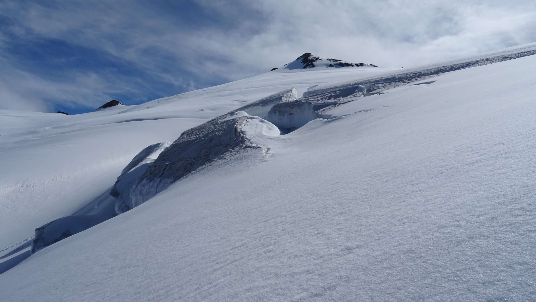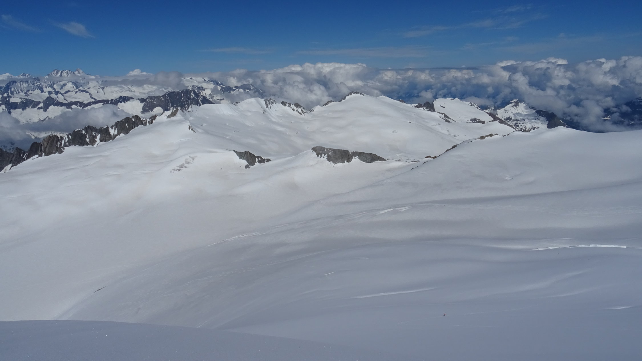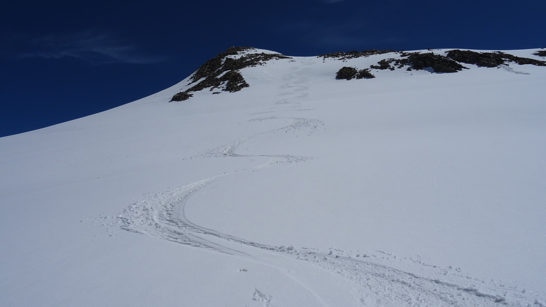 Abfahrt:Oberhalb 3300m guter Firn der knapp nicht einbricht,darunter schöner Sommersulz