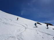 Bei der Abfahhrt am 10.30 Uhr sehr gute Verhätnisse vorgefunden, der Schnee in den steilen Flanken war leicht aufgesulzt.