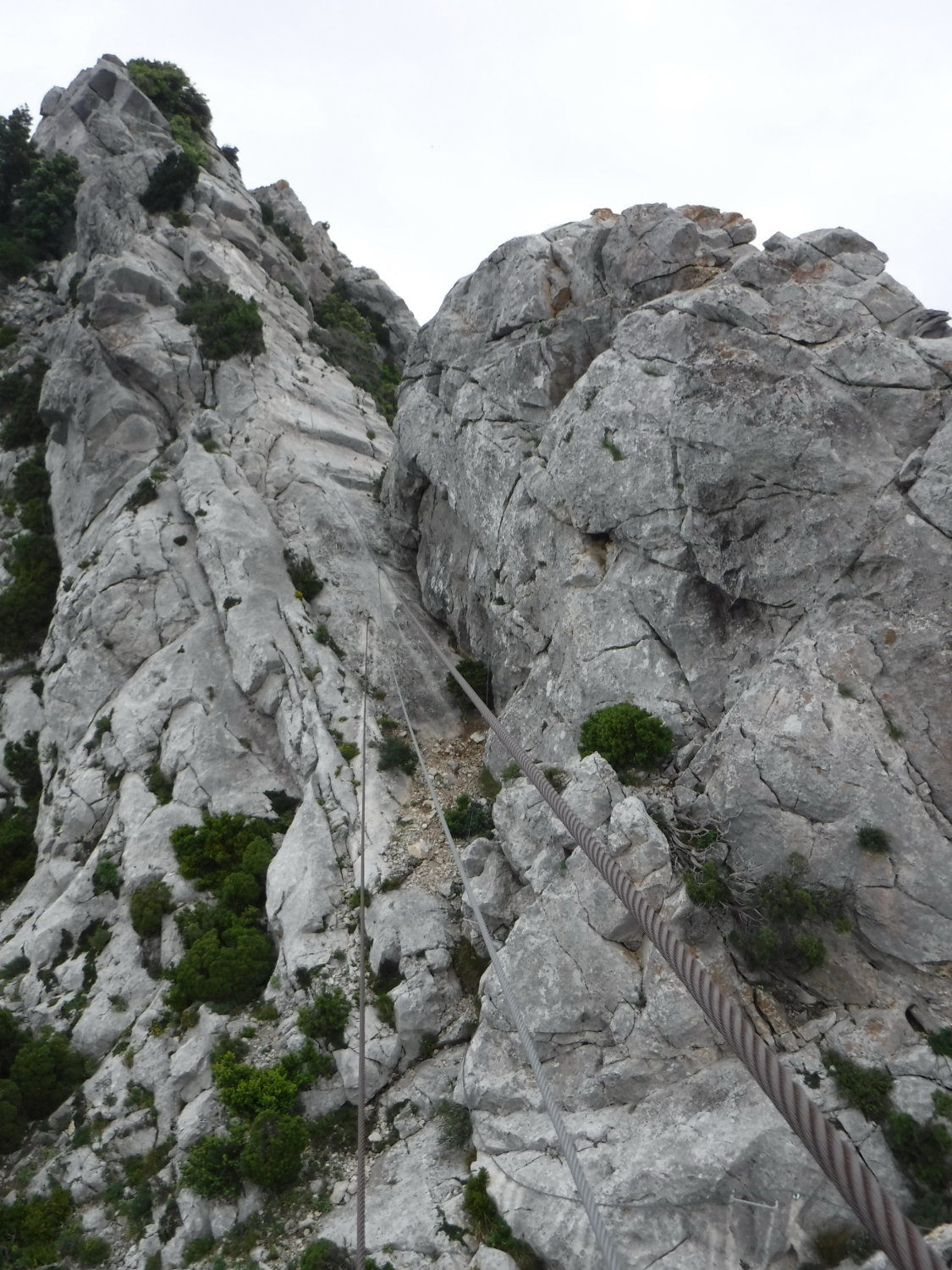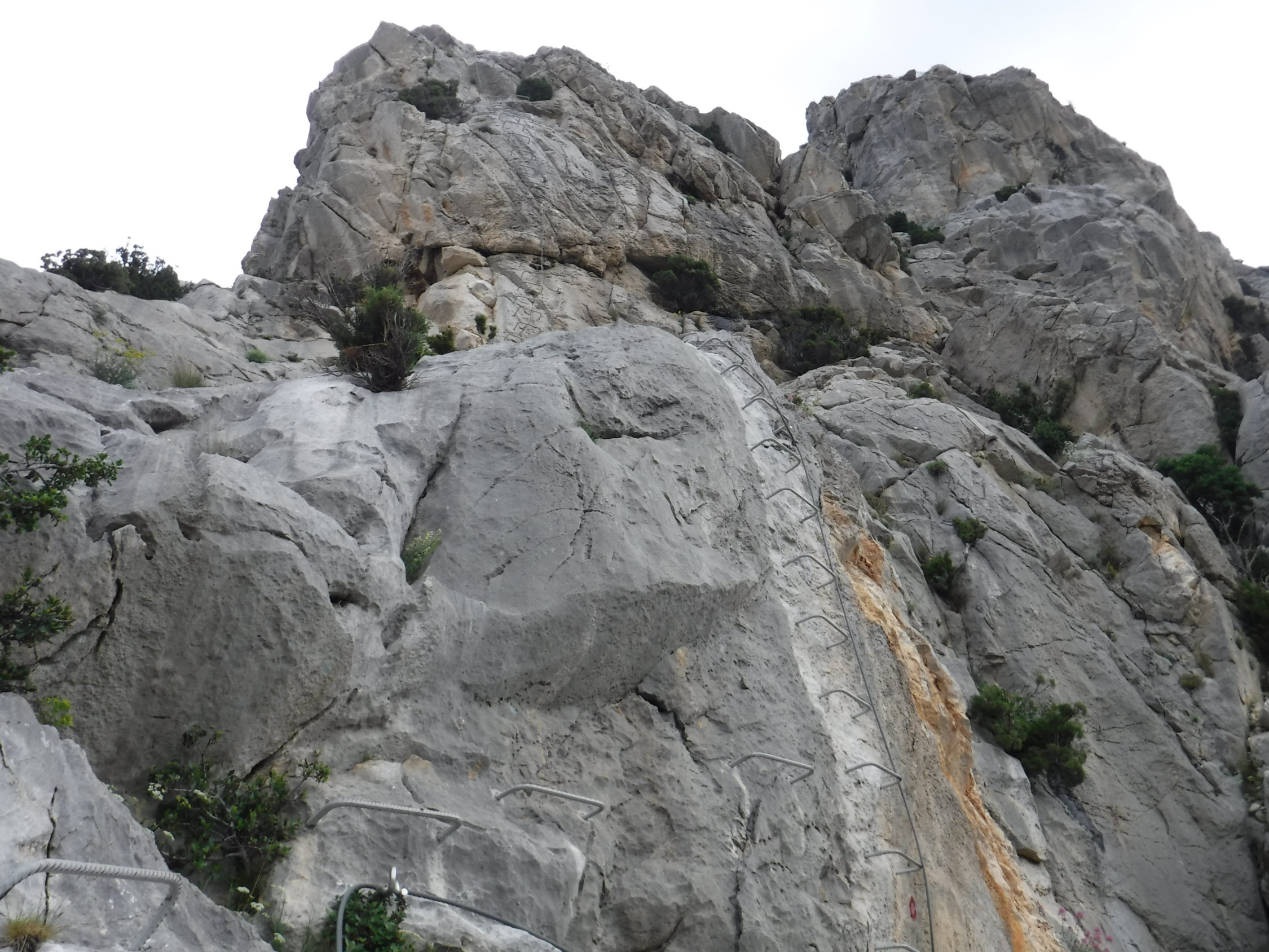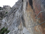 Sehr schön angelegter Eisen-Steig nach französischer Art (ein Drittel der Eisenbügel hätte jedoch vollkommen ausgereicht). „La Panoramique“ trifft zu. Aussichtsreich bis zu den Pyrenäen. Vorbildlich die Markierung. Im Abstieg gibt es eine Stelle, wo man aufpassen muss, nicht falschen Trittspuren nach rechts zu folgen.