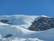 Zur Mezzalama-Hütte (3000m) kommt man aktuell fast ohne Schneekontakt. Die wenigen Leute, die wir auf der Ayas-Hütte getroffen haben, waren trotzdem mit Ski unterwegs, ein Pärchen auch zu Fuß, ist dann aber entsprechend tief eingesunken, zu Fuß geht aktuell nur bei sehr frühem Start und guter Abstrahlung.