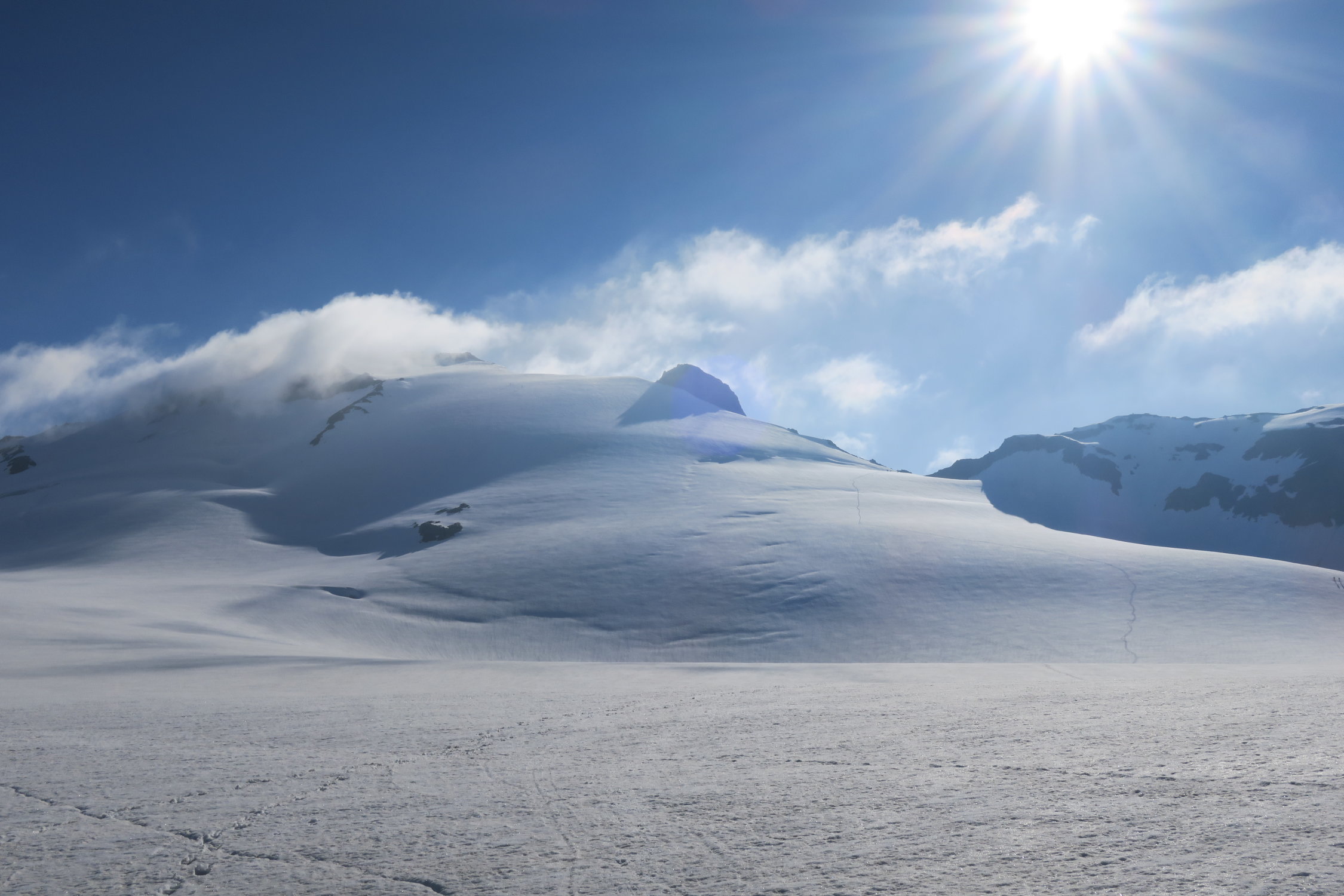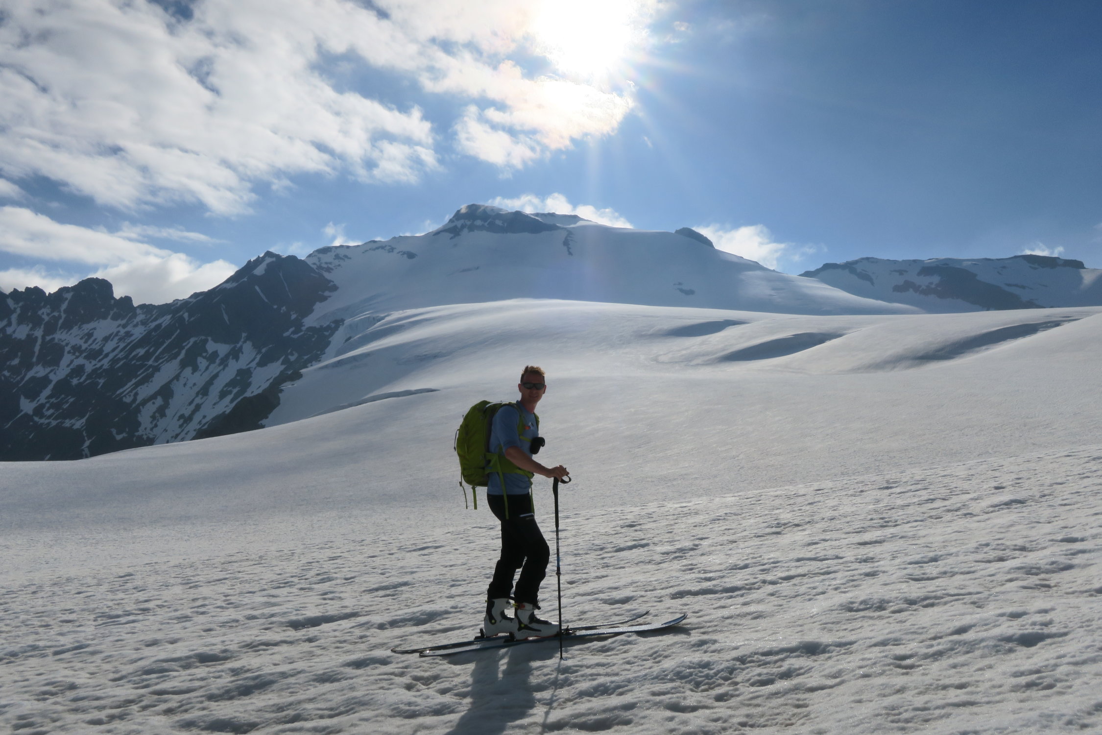 Start Umpol 10 min Ski tragen. Unter 2.900 m ist es skifahrerisch nicht lohnend - große Krater.