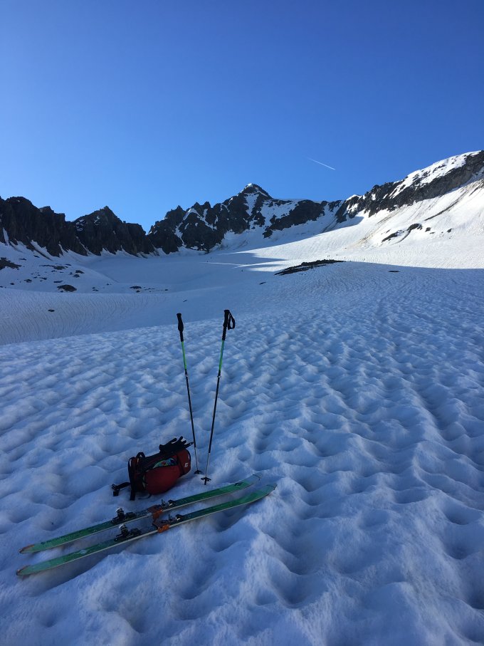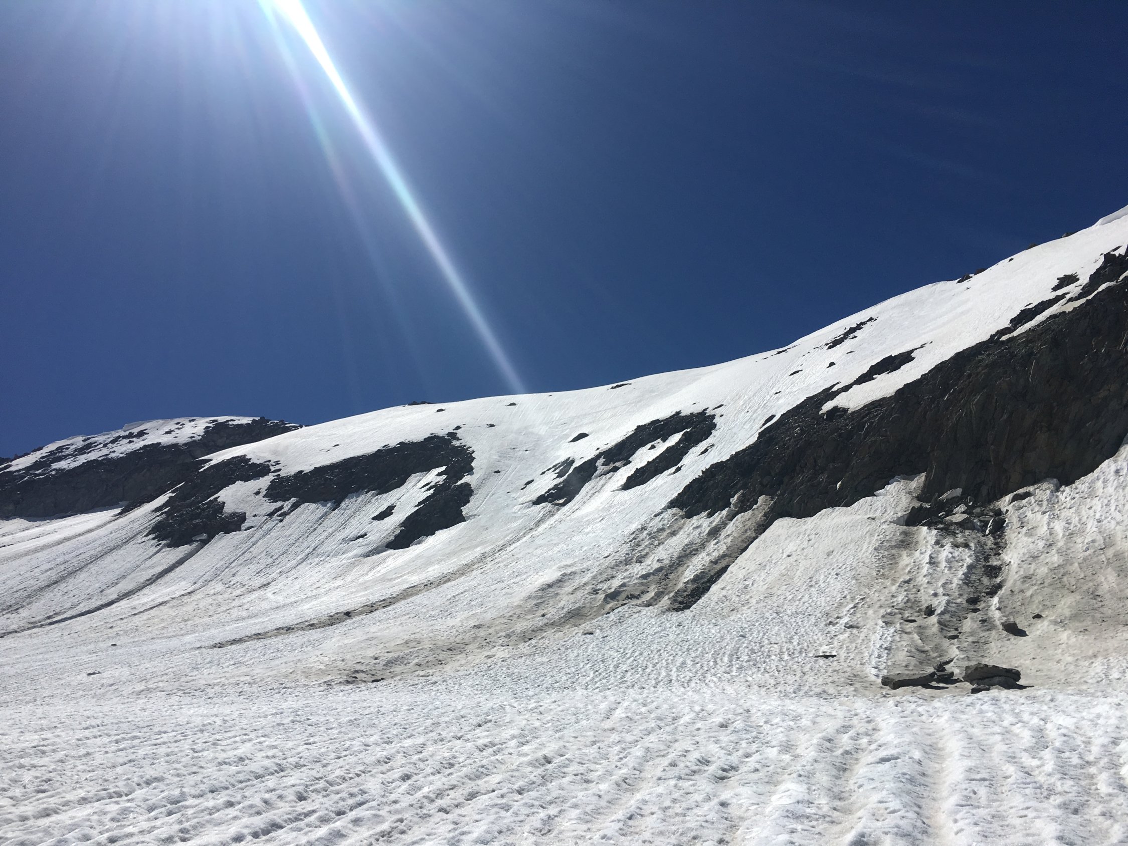 Schöner Sommerschnee, man sollte aber nicht zu früh abfahren, sonst sehr mühsam zu fahren.