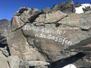 Keine Ahnung, was diese Person getrieben hat, solche Gedanken zu haben, geschweige denn sie auf 3000 M.ü.M. auf Steine zu schreiben. Ich hoffe, dieser Mensch kommt eines Tages zur Einsicht und verwendet seine Energie und Zeit für Schlaueres.