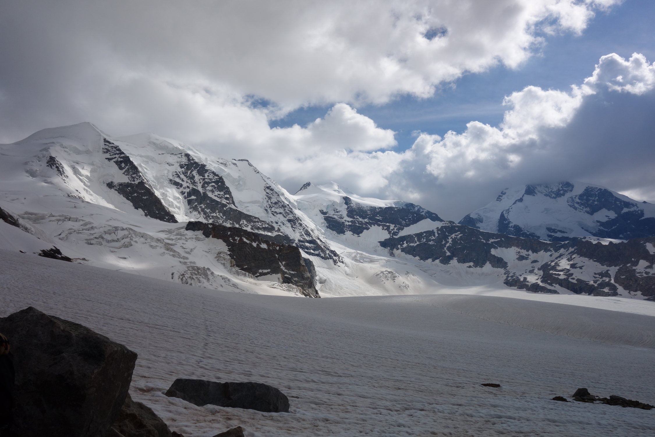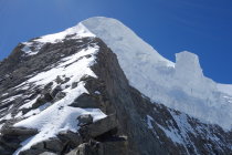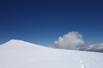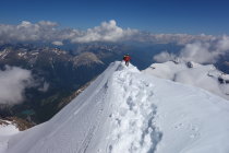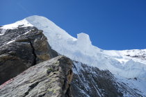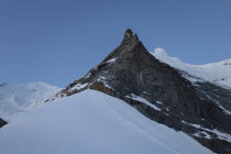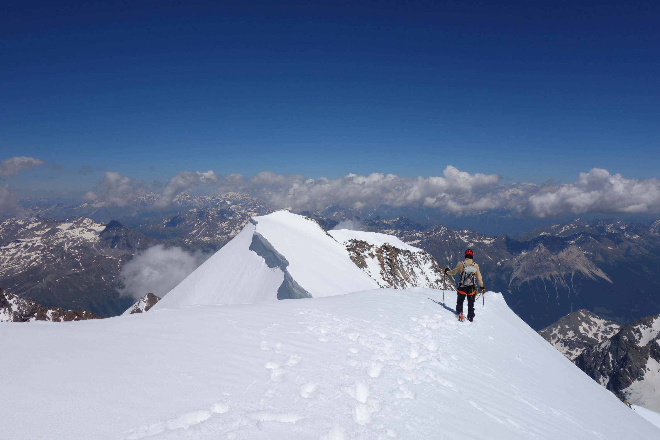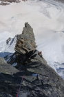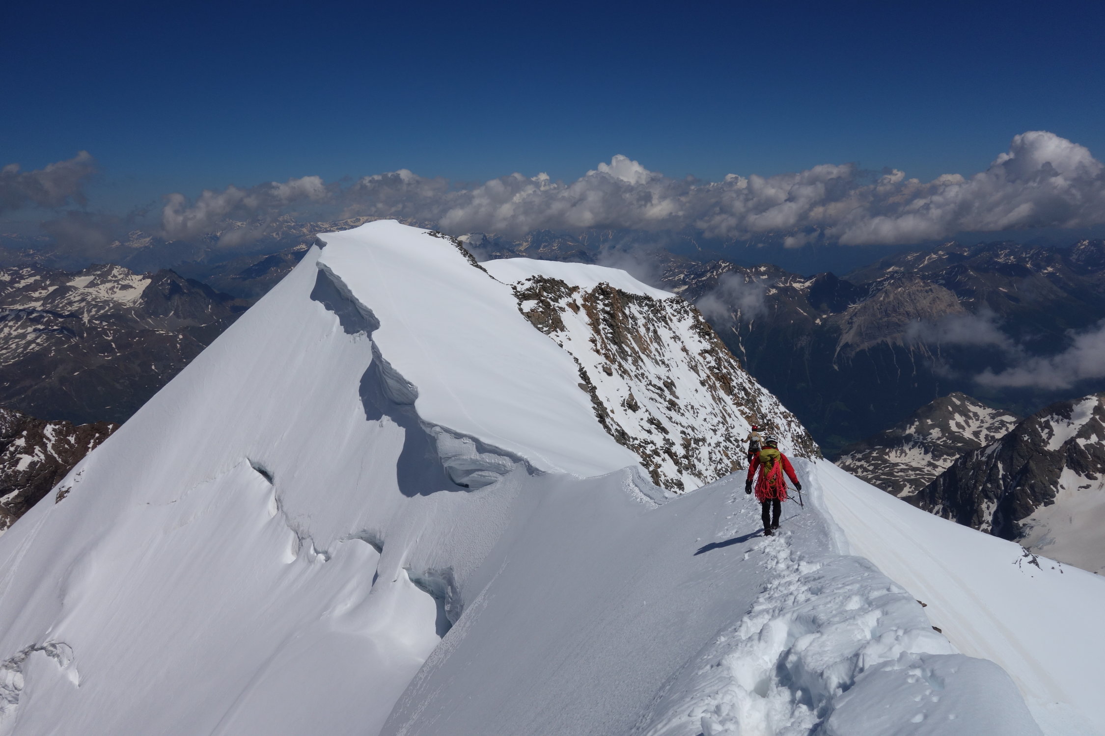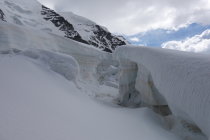 Dann quert man auf den Firngrat und kommt so zum Ansatz der zweiten Felspartie.