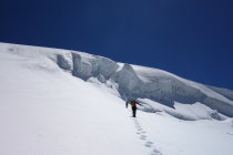 ganz weit oben und die anderen Hängegletscher sind furchteinflößend und erinnern einen ständig daran, daß man hier schnell sein sollte!!!