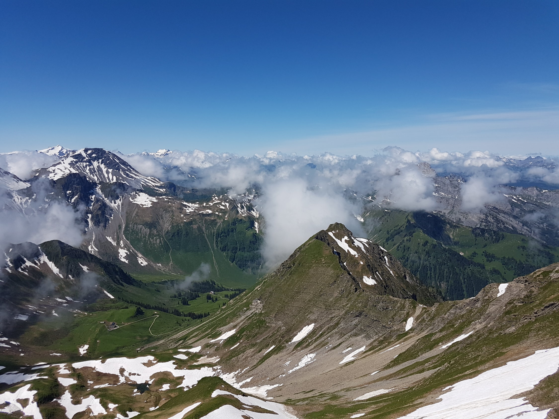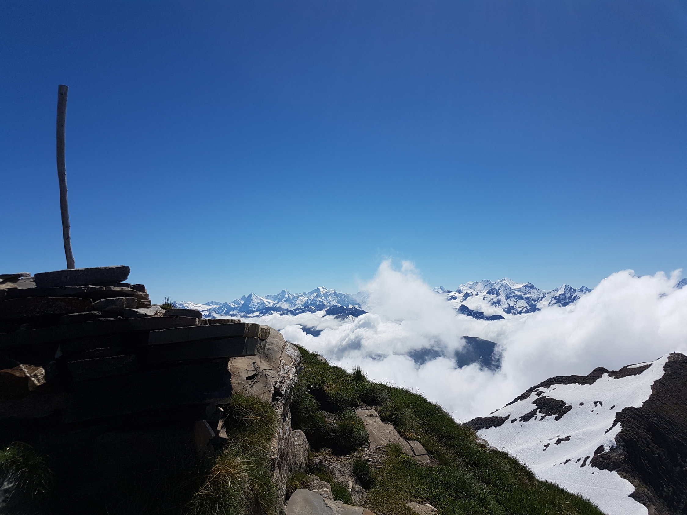 noch vereinzelt Schneefelder, zwischen Otterealp und Otterepass ist der Wanderweg whs durch die Schneemassen und Rutsche nicht mehr vorhanden. Nach den Regenfällen und wegen des Gerölls ziemlich rutschig und mühsam. Im Aufstieg zur Männliflue noch wenige Schneefelder, die gut um- oder begangen werden können. Ich war der einzige Wanderer unterwegs. Grossartige Tour und im Gegensatz zur Jungfrauregion völlig einsam.