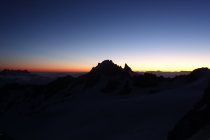 Gletscher noch sehr gut eingeschneit. Einstieg W-Flanke mixed, Firn, Eis und bröseliger Fels.