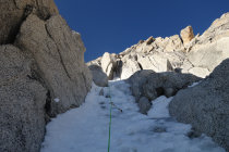 Eiscouli weiter oben hoch genussvoll und unterhaltsam, gut zu schrauben, leider viel kurz. Danach Firngestapfe.