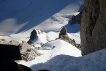 Nordwände im Argentière Kessel sahen schon recht aper aus, Argentière Nordwand noch recht gut.