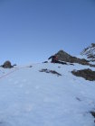 Heute dank kühlen Temperaturen und sehr guter Abstrahlung alles schön hart gefroren. Unseres Erachtens ist dies eine wichtige Voraussetzung für diese Tour. Ist der Schnee nicht gefroren, könnte der Riss vor dem Schulterstand (sofern er noch Eis drin hat) heikel werden und zudem die Platten über dem Schulterstand zu einem Eiertanz werden.